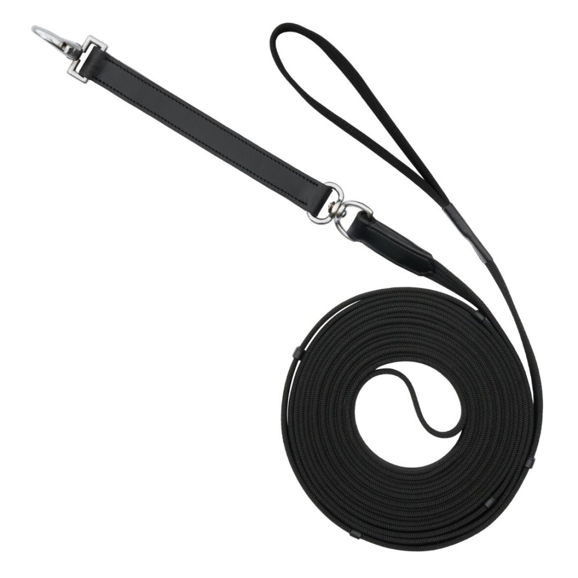 Langt longetov fra HorseGuard med læderstrop. Dette tov måler 8 meter og er med læderstop i enden, samt et roterende spænde.
