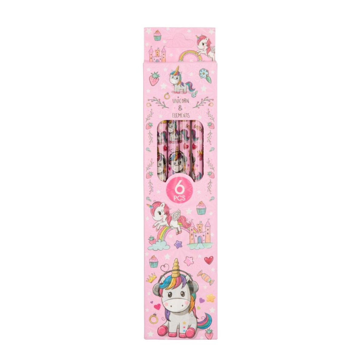 Lille sød æske med unicorn motiv og 6 stk blyanter med samme motiv fra Equipage.