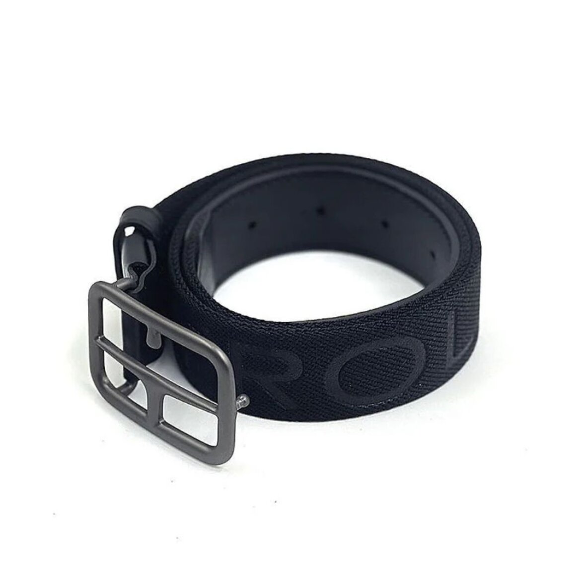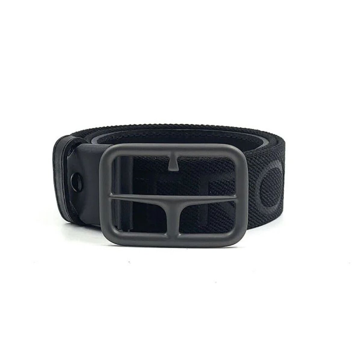 Sports bælte fra Trolle Projects. Dette bælte er fremstillet i elastisk rayon med Trolle Projects logo skrift og har læder ender. Logo udsmykket metallås i en mat titaniumfinish i fronten.