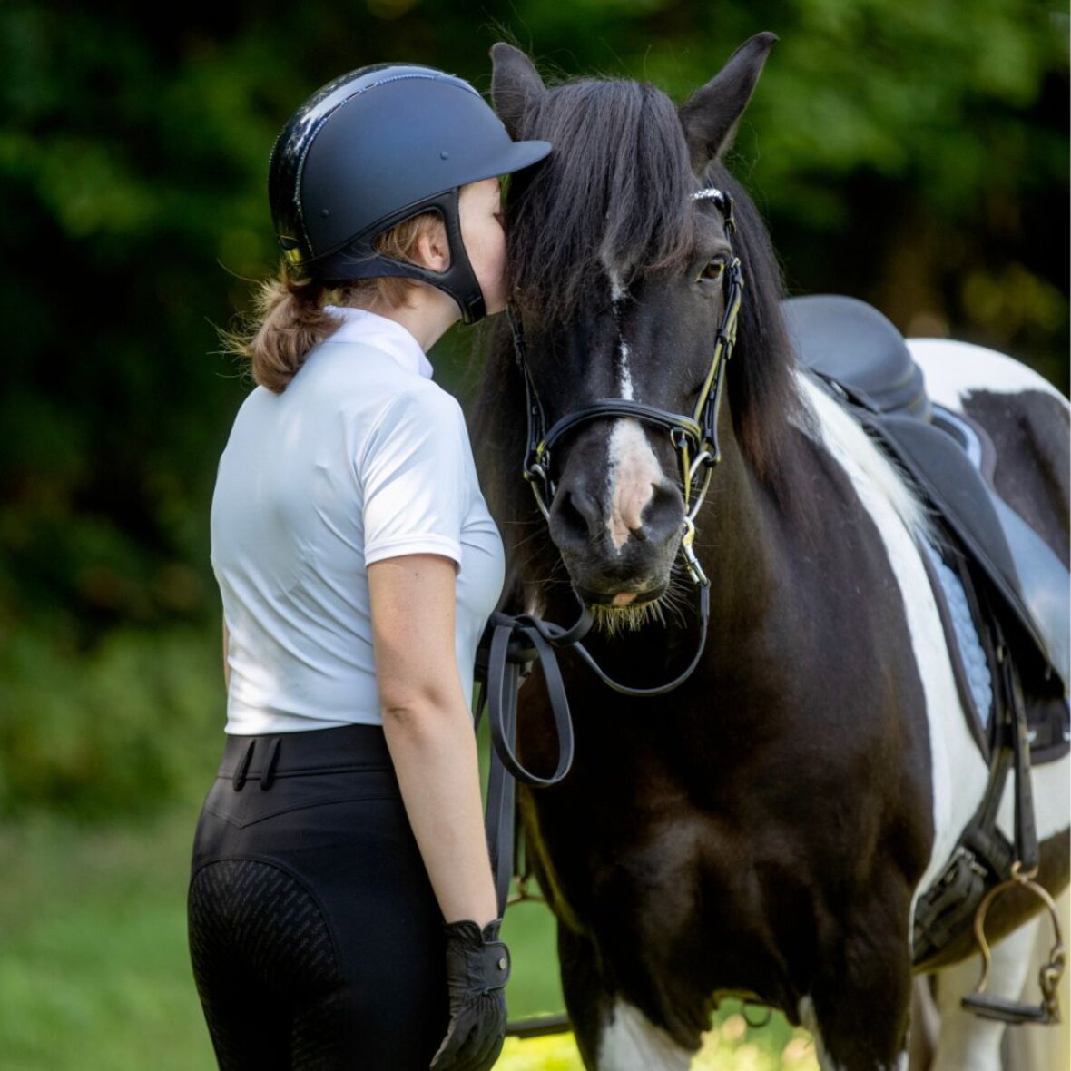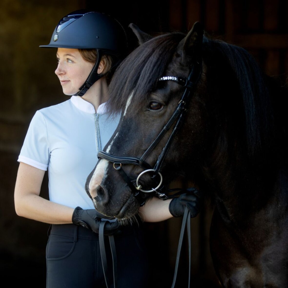 Anatomisk formet næsebånd fra Catago. Dette næsebånd er med foring og har sort metal spænder.