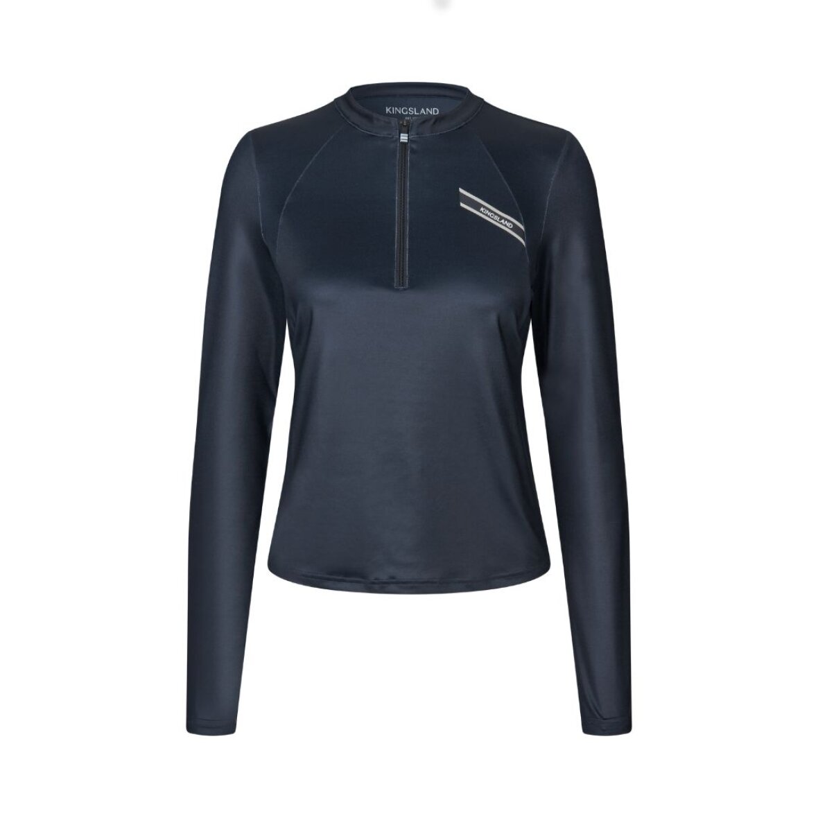 Flot træningsbluse fra Kingsland. Denne bluse er fremstillet i ånd- og strækbart materiale, som gør den behagelig at have på. Den lukke si fronten med kort lynlås og har lingsland logobånd på brystet. Bagpå er der Kingsland logo.