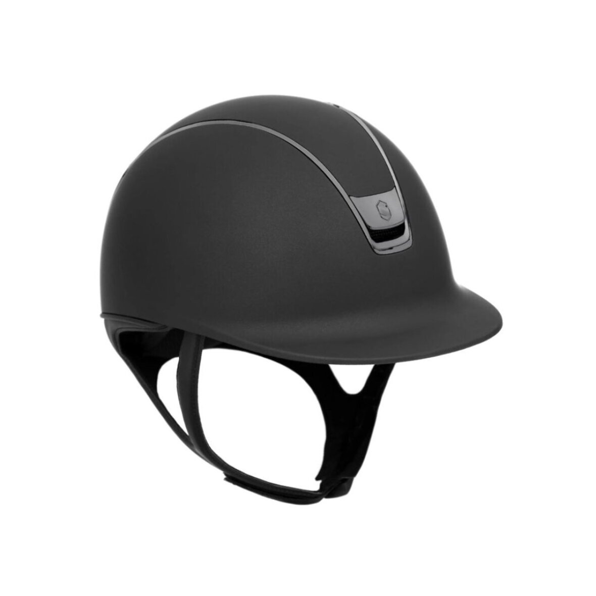 Den elegante Regular Shadowmatt 2.0 ridehjelm, er med sort chrom trim og blazon. Ridehjelmen 2.0 har en mere oval pasform som gør at den kommer længere ned på hoved og om nakken. Den har også fået et opgraderet luftindtag foran, som giver enestående ventilation, samt ridehjelmen har ingen direkte tryk på panden, så man undgår sved og hovedpine.