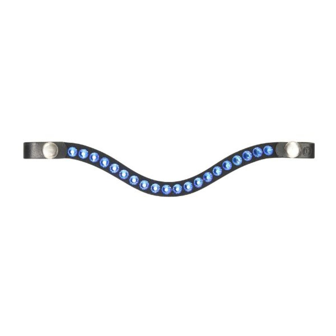 Sødt lille pandebånd som passer til kæphestene. Dette pandebånd er let buet og er med blålige krystaller og har trykknapper i enderne for hurtig påsætning.