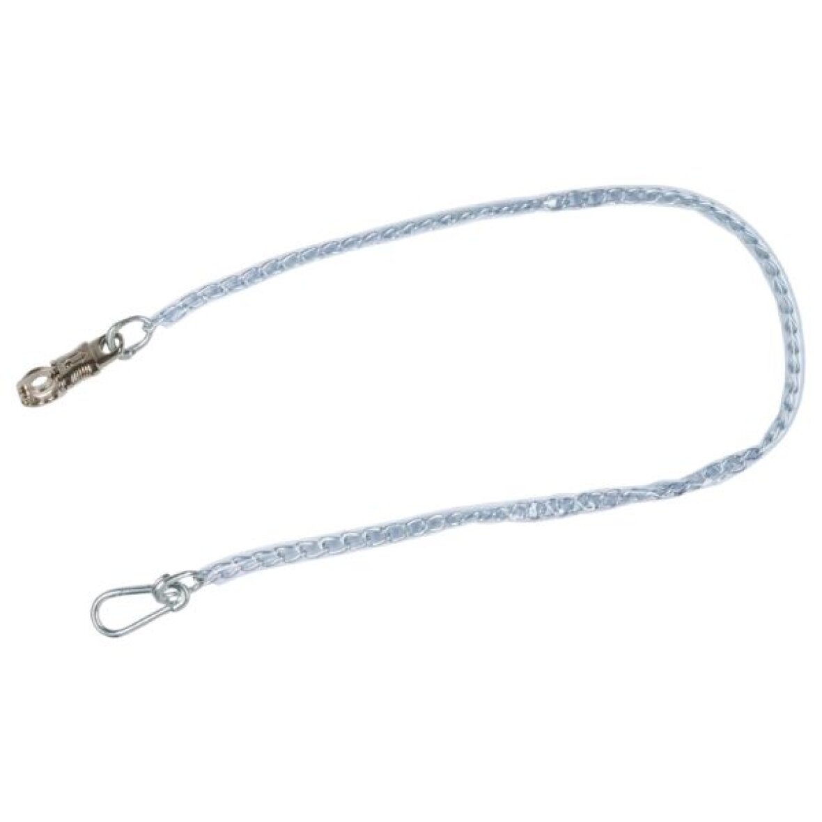 Aftagelig trailerstrop i metal dækket i blødt plastik. Det bløde plastik hylster forhindrer skader på metallet og beskytter hesten mod skader fra kæden. Trailerstroppen har en standard karabinhage til fastgørelse på et fast bindepunkt og panikhage til fastgørelse i grime.