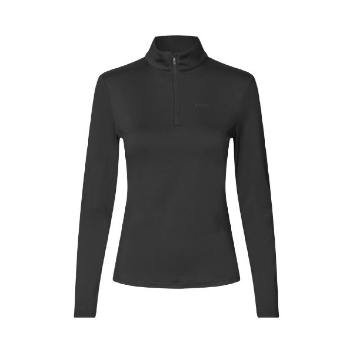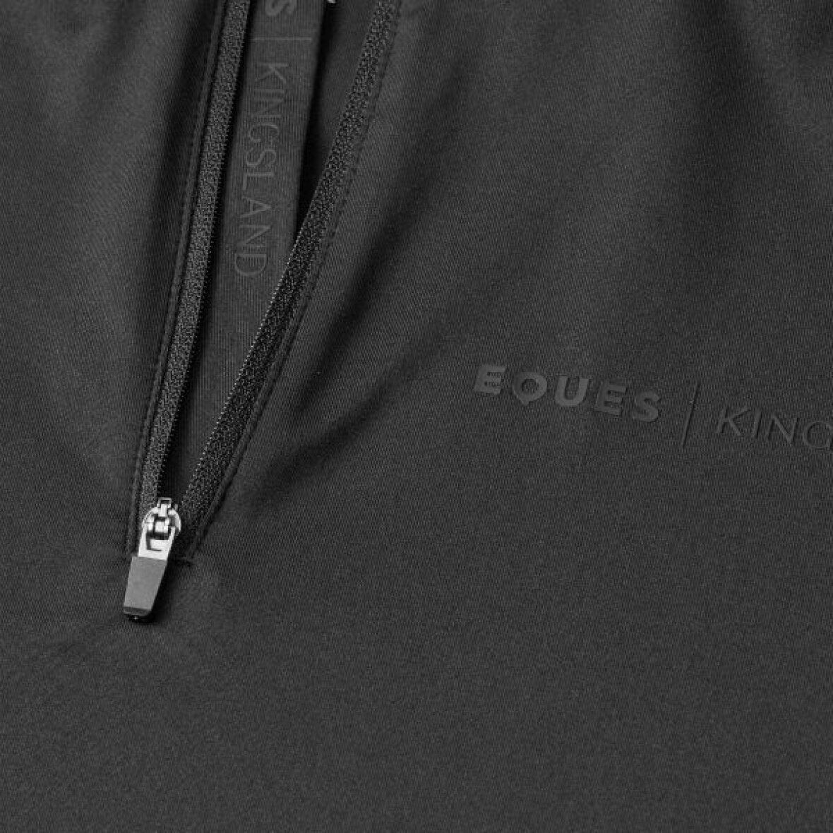 Træningsbluse fra Eques by Kingsland-kollektionen som er åndbar og hurtigtørrende. Denne træningsbluse har en avanceret friskhedsteknologi som neutraliserer lugt og sikrer langvarig friskhed. Træningsblusen har 4-way stretch materiale som gør at den er ekstra fleksibel og komfortabel for rytteren. Træningsblusen har logo ved brystet og i den øverste del af ryggen samt under den korte lynlås.