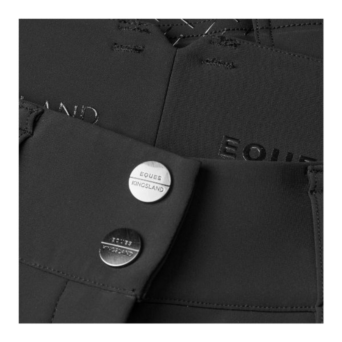 Jodphur ridebukser fra Eques by Kingsland. Disse ridebukser er med full seat grip silikone med logo-mønster og er fremstillet i sommer-softshell stof, som er åndbart og fugthåndterende. Ridebukserne har 4-way stretch, hvilket gør dem ekstra behagelig for rytteren. Ridebukserne har fine detaljer såsom jeans-inspirerede for- og baglommer, logo på låret og knapper samt bløde og komfortable fodstroppe