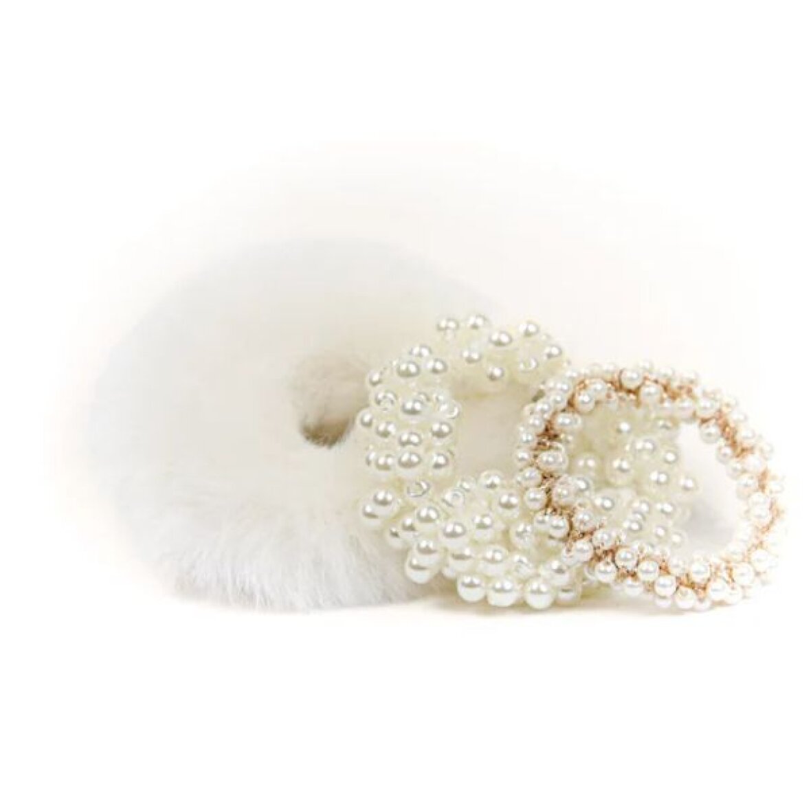 Golden Frost Pearl sæt fra Bellinoxx er det smukkeste perle look. Med dette sæt får du muligheden for at lave en opsætning lignende billederne. Golden Frost Pearl sættet består af flere styles fra BelliNoxx, der er lavet af et strækbart elastik, hvor der er påsat hhv. faux fur og imitationskrystaller. Sættet indeholder: White Vienna, white Florentina og original Goldie