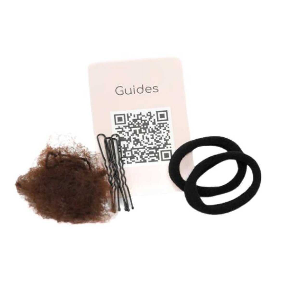 Opsætningskit fra Bellinoxx. Det perfekte kit til at hjælpe dig igennem opsætning af dit stævnehår. Dette kit indeholder alt du skal bruge: 4 hårnåle, 2 elastikker, 1 hårnet og en guide.