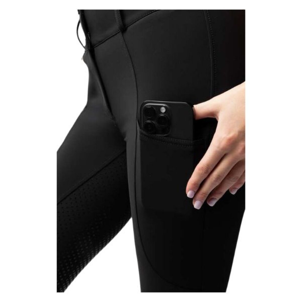 Ridebukser fra Horze med fuld grip silikone. Disse ridebukser har telefonlommer på låret, bæltestropper og meget elastiske benafslutninger. Tyndt Lycra-indlæd i tone-i-tone med hovedstoffet.
