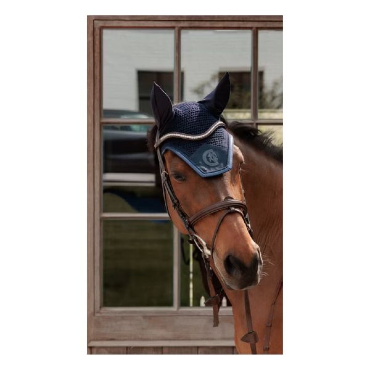 Hut med elegant design fra Kentucky. Denne hut har et diskret Kentucky-logo og et glitrende kantbånd, der matcher huttens farve og tilføjer et raffineret look. Holder effektivt fluer og insekter væk fra ørene og sikrer, at din hest forbliver uforstyrret. Det forlængede halsstykke sikrer at hutten ikke glider og forbliver dermed på sin plads. Elastisk ørestof giver en tæt og behagelig pasform for hesten.