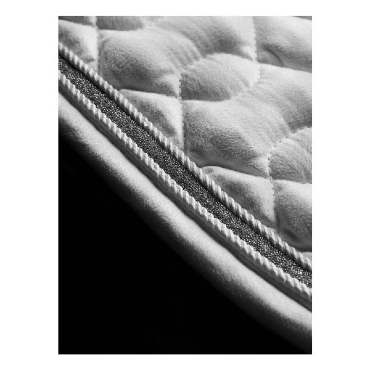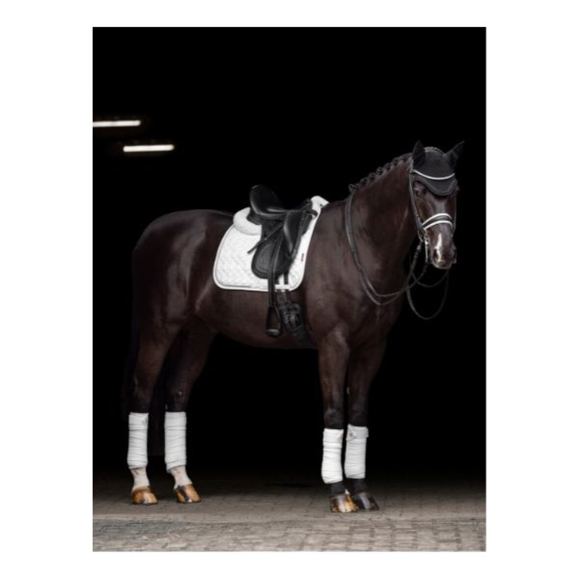 Crystal suede dressur underlag fra LeMieux. Med sit ultrabløde for, PU-læder-gjordbeskyttelsesområde og høje mankeprofil giver dette sadelunderlag optimal komfort. Den friktionsfri bambusforing transporterer sved og fugt direkte fra din hests hud for pålidelig åndbarhed og komfort under arbejdet. De glitrende og flettede detaljer på kanterne og ruskindseffekten giver et ekstra elegant og luksuriøst look.
