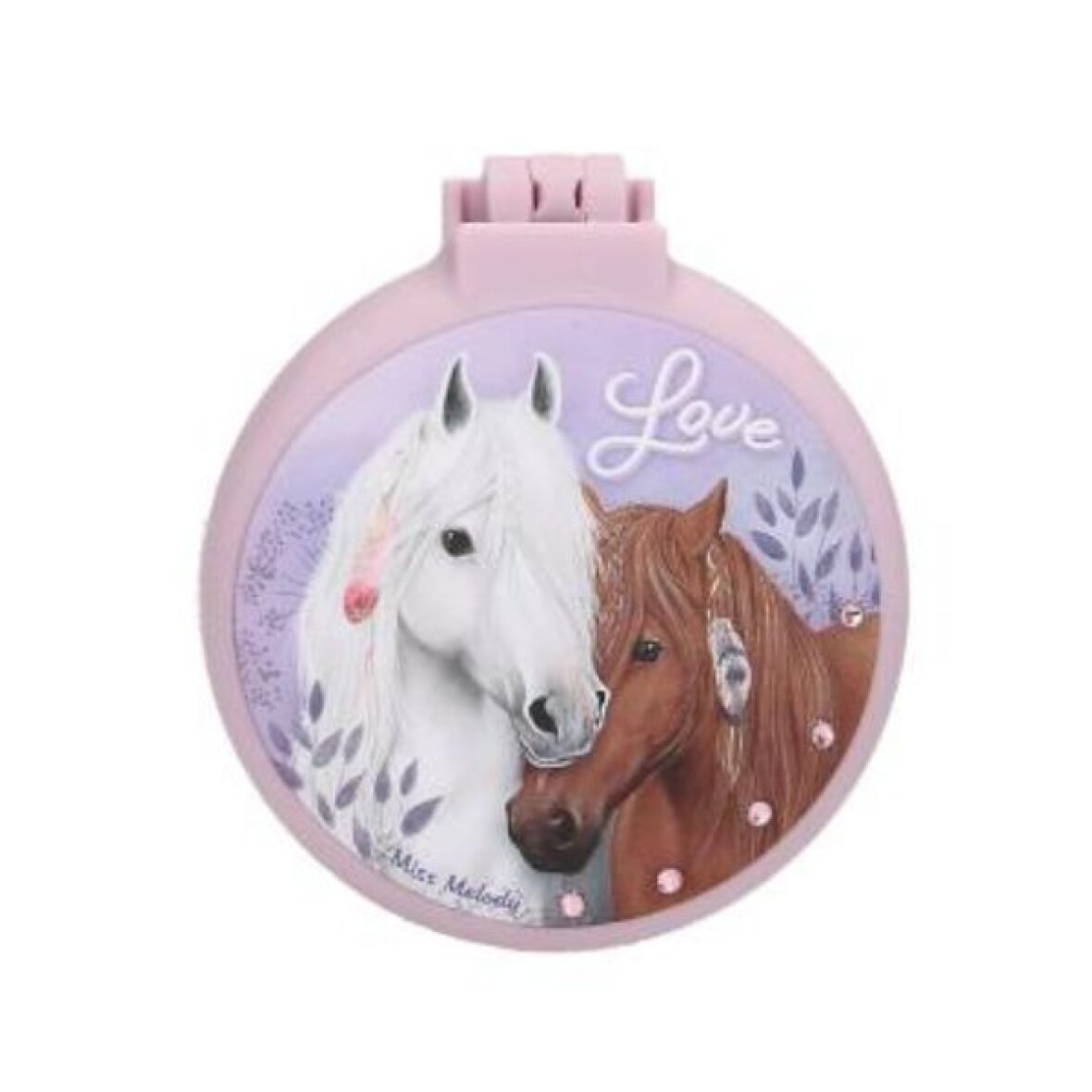 Lille folde hårbørste med spejl fra Miss Melody. Passer perfekt i lommen eller tasken.