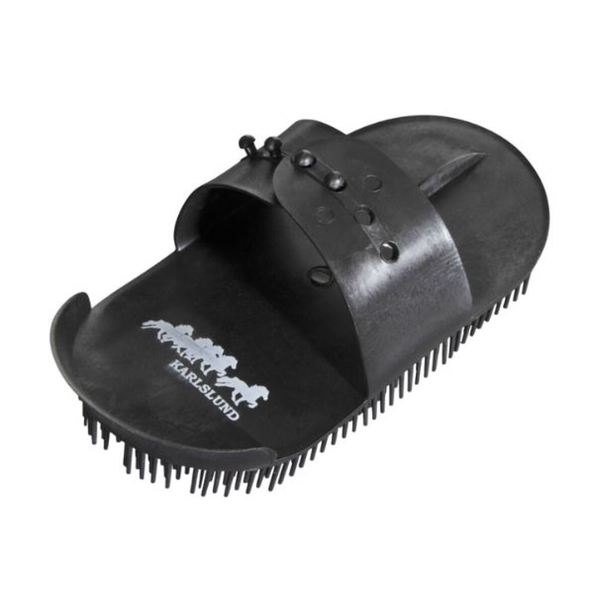 Plastik strigle fra Karlslund der effektivt fjerner snavs og løse hår. Kan også bruges til at rede man og hale. Håndstroppen kan justeres til forskellige størrelser.
