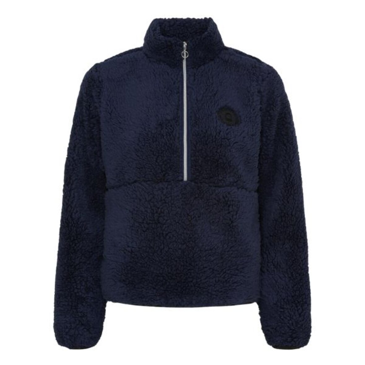 Blød teddyfleece til børn med half-zip fra Equipage. Denne jakke er perfekt til kølige dage. Dekorative quiltede detaljer på skuldrene tilføjer et stilrent touch, mens den ekstra lange lynlås, i kontrastfarve, foran gør det nemt at trække blusen over en hjelm. Logo-badge på brystet giver et ekstra touch, og elastisk kantbånd ved ærmer og lommer sikrer en god pasform og holder samtidig kulden ude.