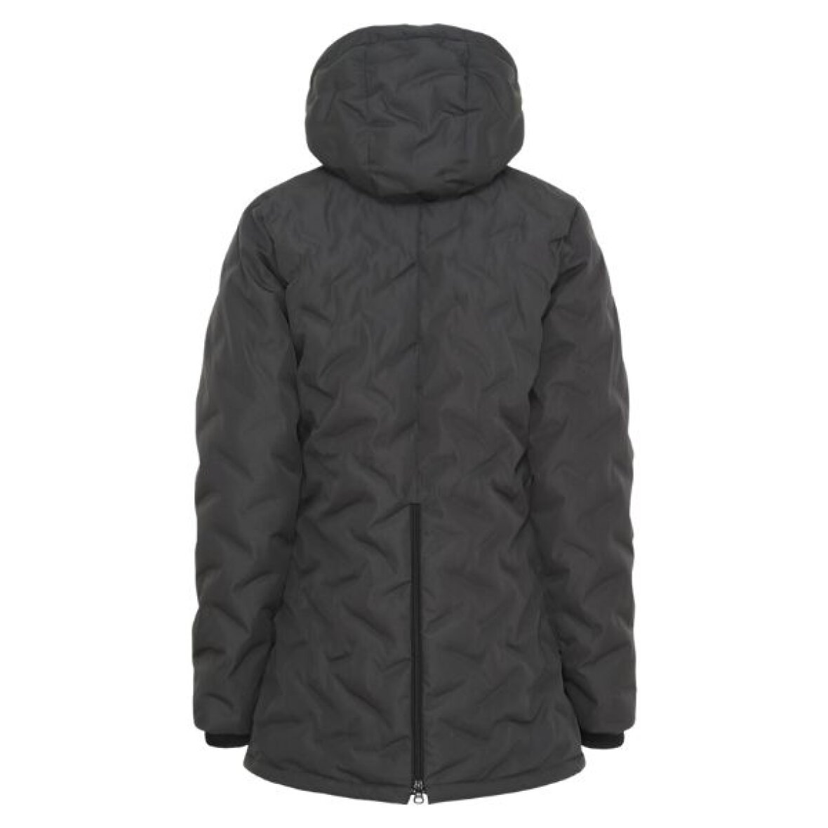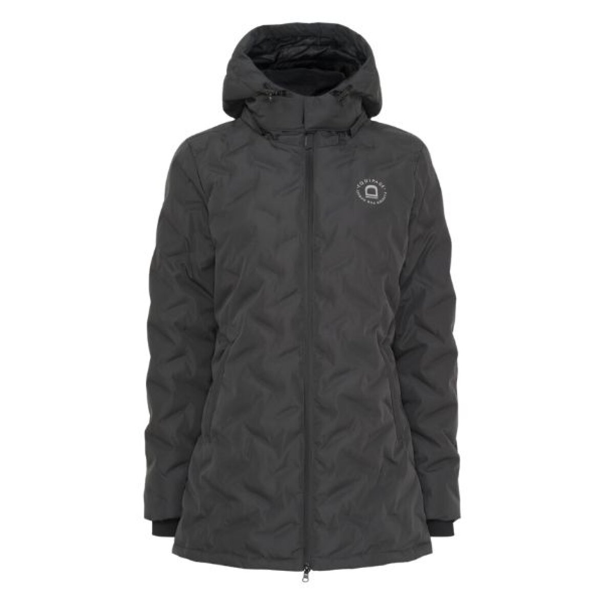 Lang, varm vinterridejakke til børn fra Equipage. Lang lynlåsåbning bagpå med stofkile for øget bevægelighed under ridning. Jakken har varm quiltning, stormmanchetter ved ærmerne og en aftagelig hætte. Reflekslogo på brystet for øget synlighed. Vandtæt op til 3000 mm.