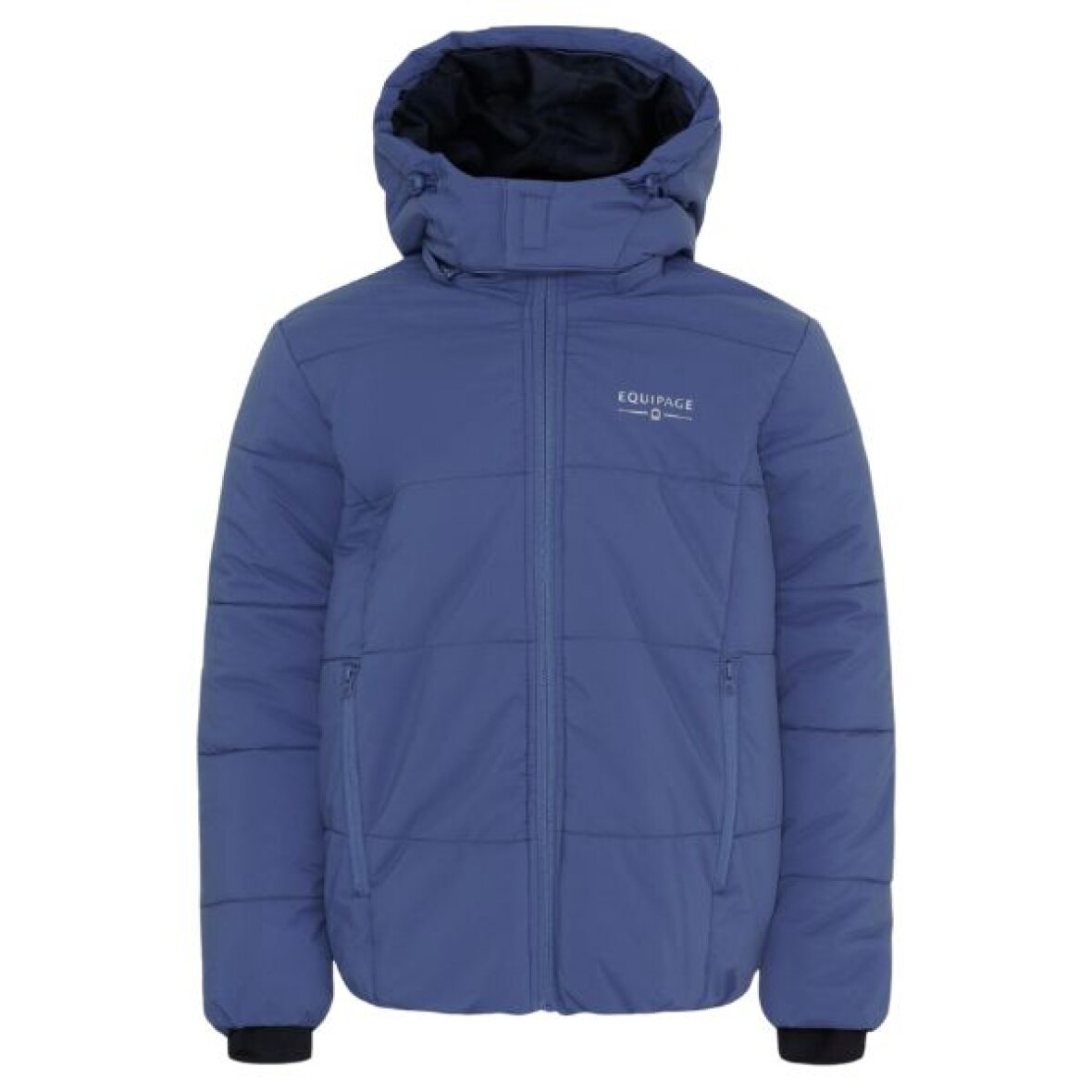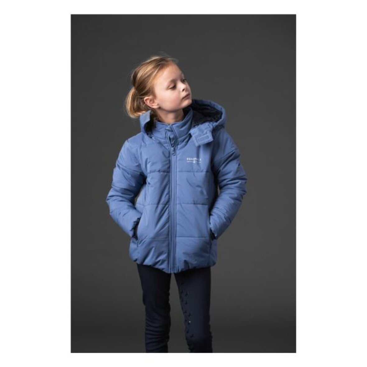 Jakke til børn fra Equipage. Lækker og varm dynejakke med blødt og varmt plysfor indvendigt i kroppen. Denne jakke har en gummibelagt lynlås foran, lommer med lynlåslukning og en aftagelig hætte. Fint logo-print på brystet og stormmanchetter ved ærmerne for ekstra beskyttelse mod vind og vejr. Vandafvisende 3000 mm og vindtæt 3000 mvp.