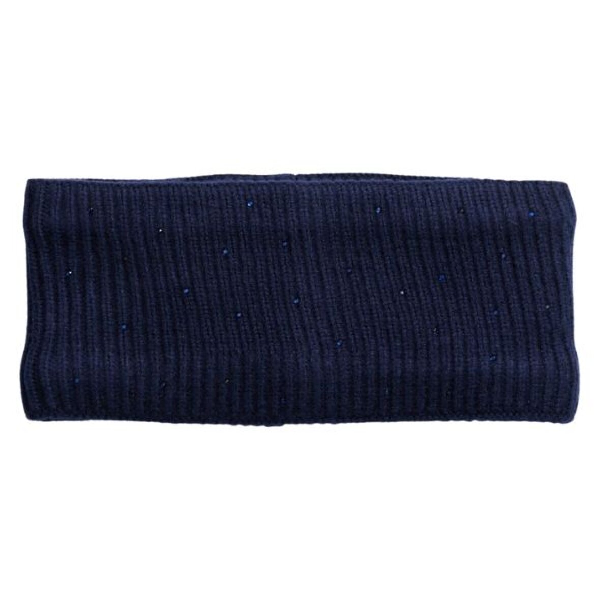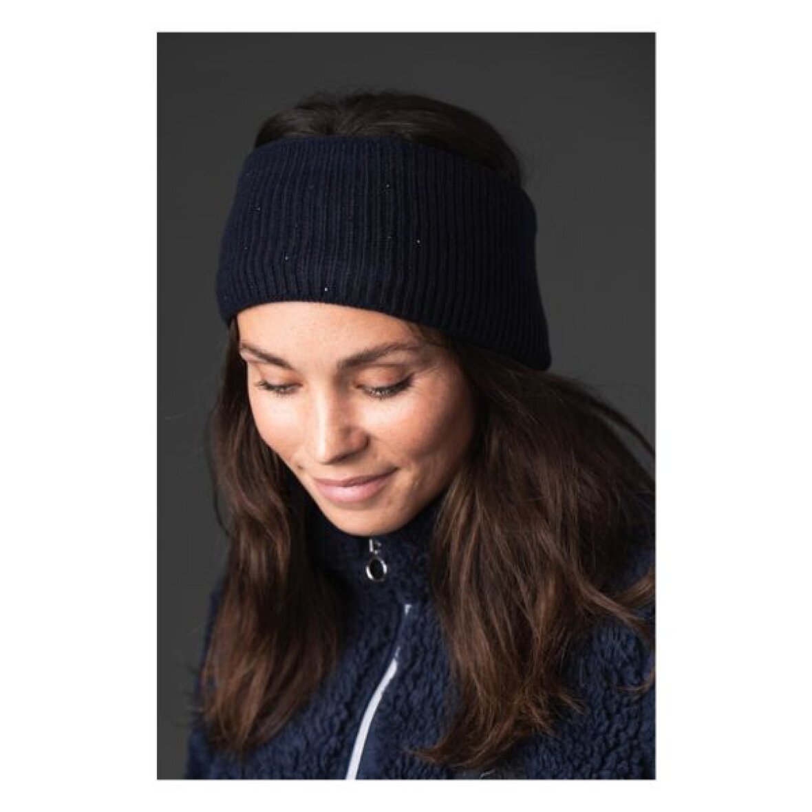 Ribbet strikket pandebånd med rhinsten. Blød fleece lining på indersiden.