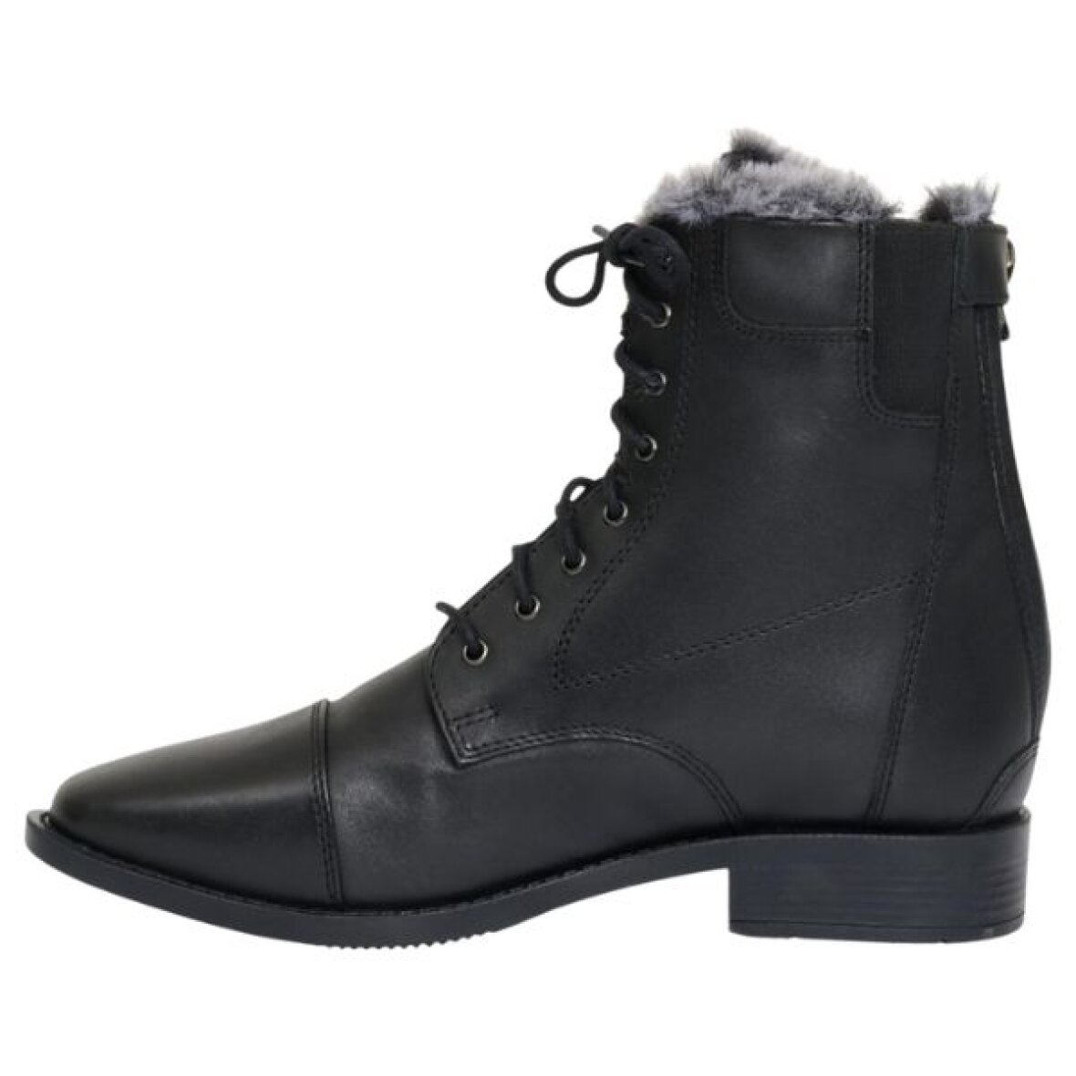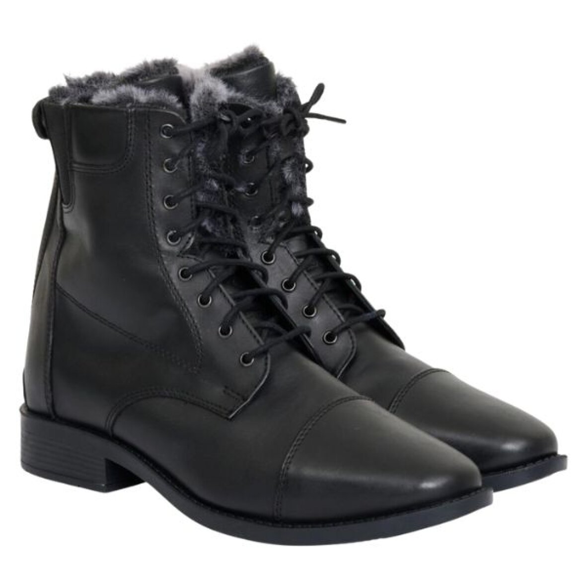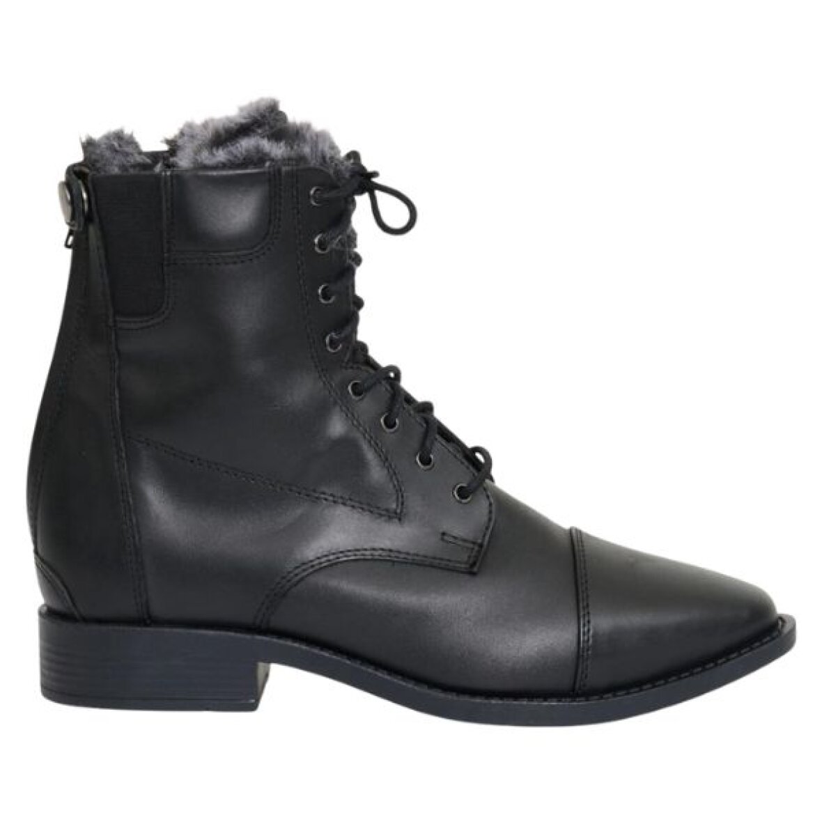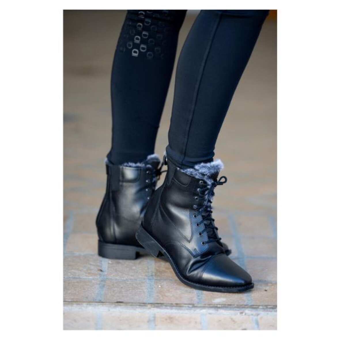 Jodphur læder støvler fra Equipage med blød og varm pels-for. Snøre i fronten og lynlås bag på med en læder strop og knap, der sørger for at lynlåsen ikke åbner.
