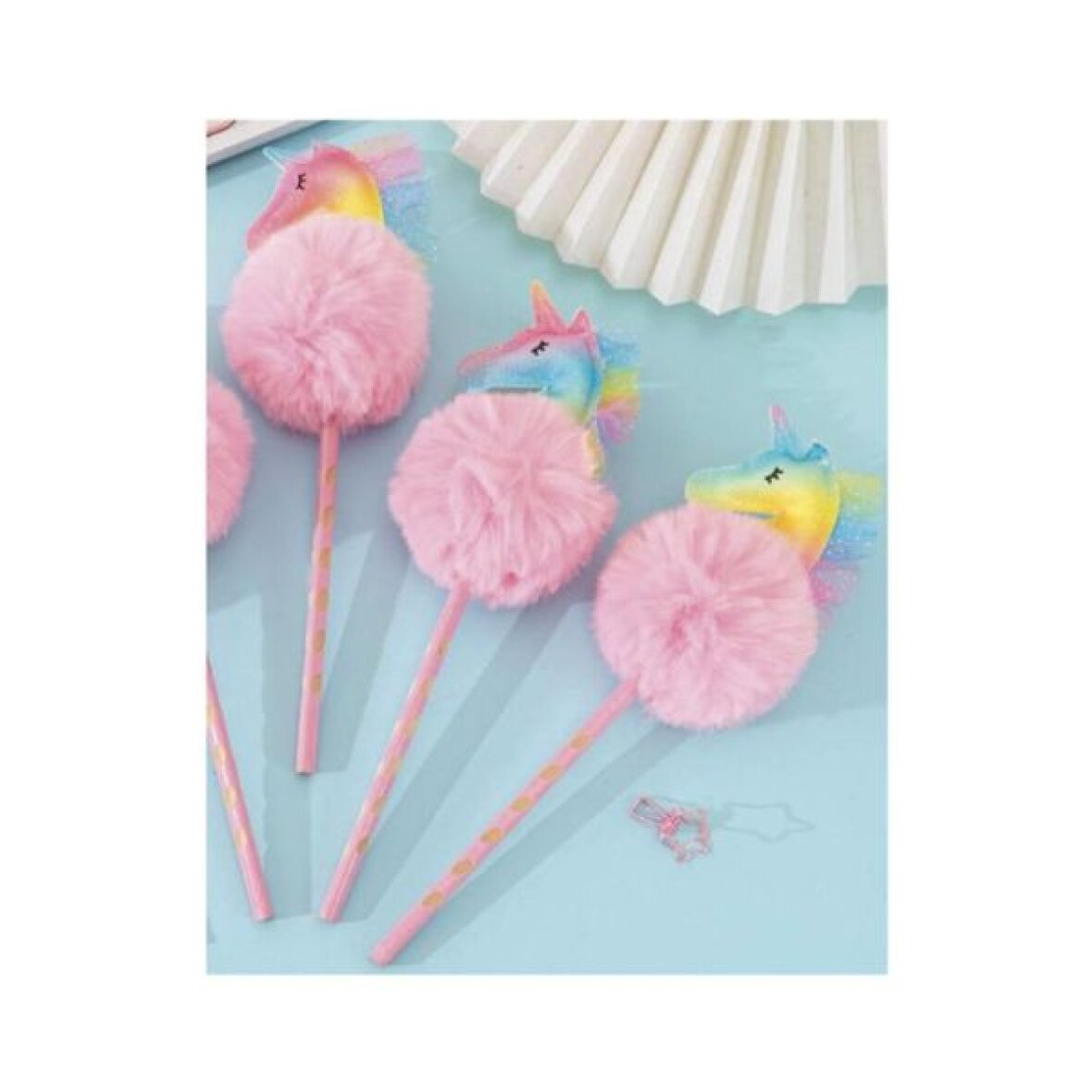 Sød regnbue enhjørninge blyant med glimmer og pom pom fra Equipage.