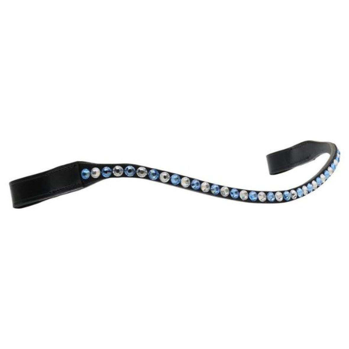 Løst pandebånd fra HorseGuard. Pandebåndet er let buet med skinnende rhinsten i blå og klar. Fremstillet af 100% læder.