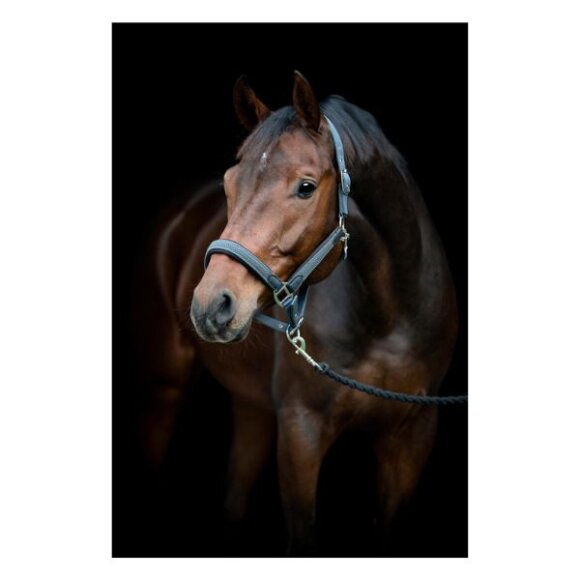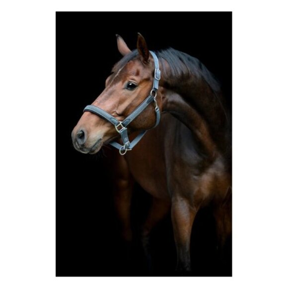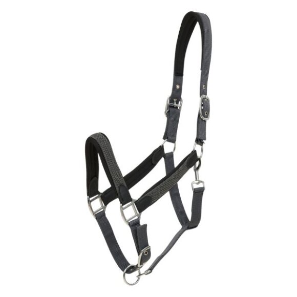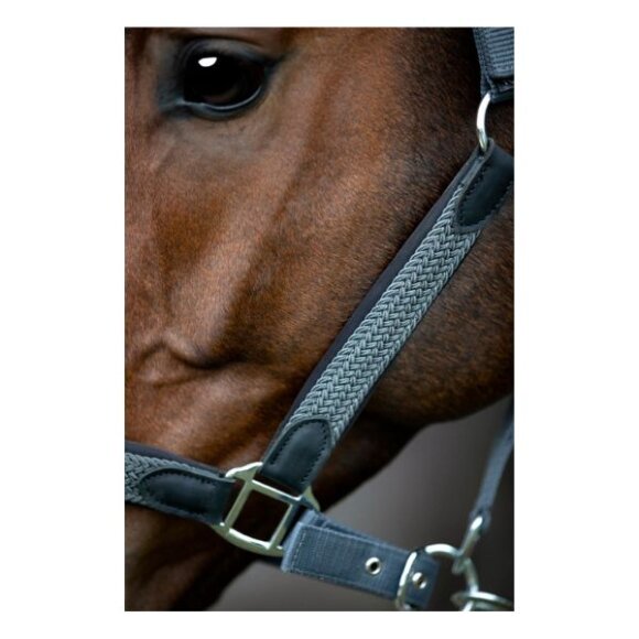 Flot flet grime fra HorseGuard i nylon. Der er sølvfarvede spænder og flet på siderne og næseremmen. Det formede neopren ved næsebånd og i nakken samt at den er justerbar 3 steder gør grimen behagelig for hesten.