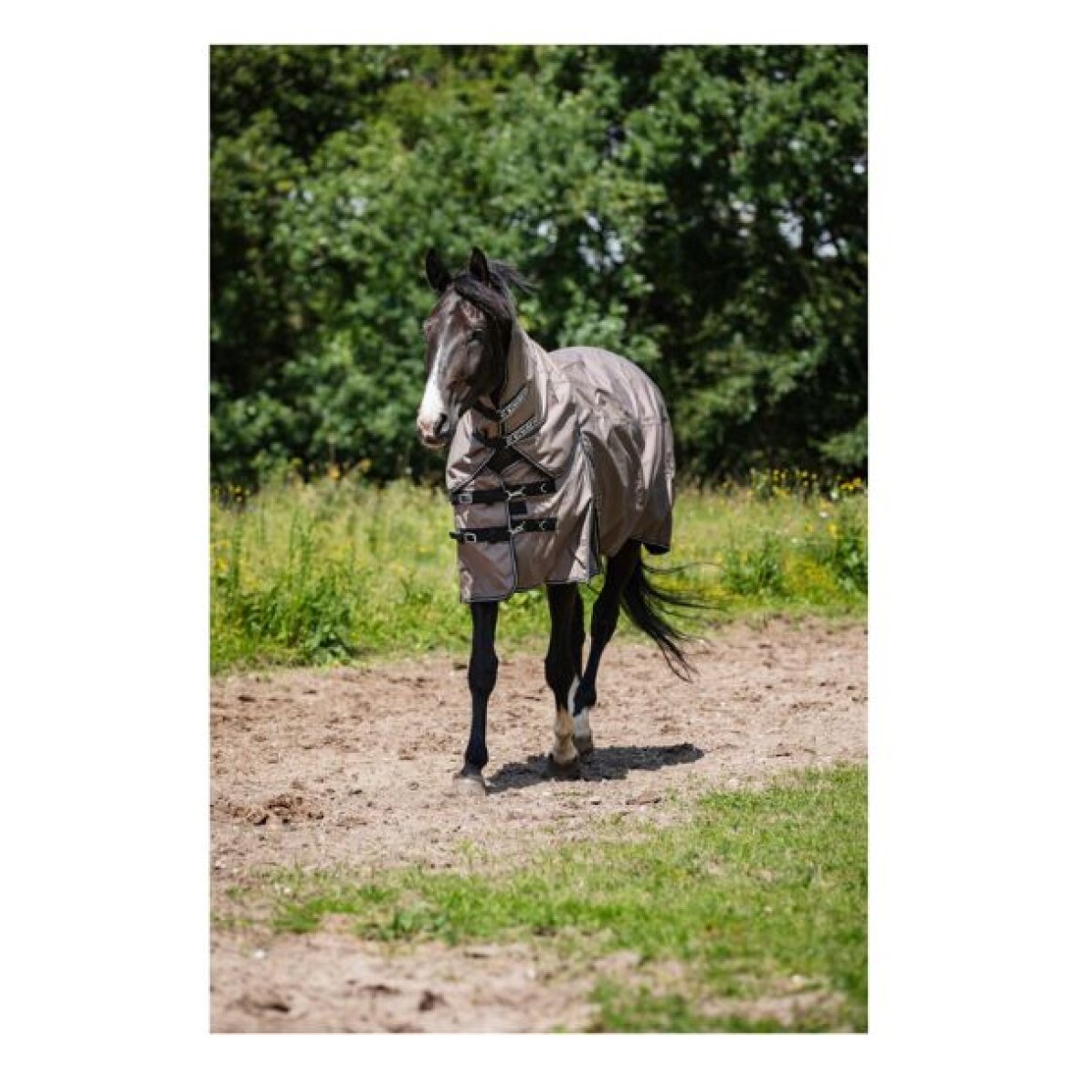 Løs hals 200 g som passer til turnout dækkenet fra Horseguard. Halsen har en justerbar dobbeltlukning med både spænder og velcro. Indersiden har et all-over print med logo.