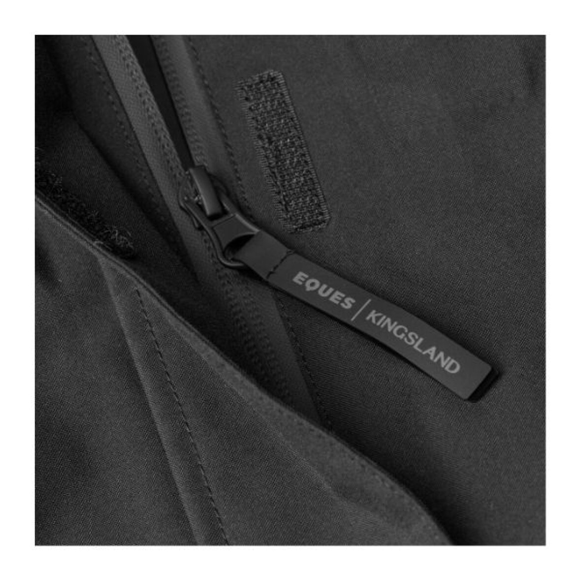 Ride heldragt fra Eques By Kingsland samarbejdet. Denne heldragt har tapede sømme, en vandtæt 2-vejs lynlås og er vindtæt (10.000 g/m²) og vandtæt (10.000 mm), hvilket gør den perfekt til rideture om vinteren. Refleksdetaljer øger rytterens synlighed i mørket og brystlommen indvendigt og udvendigt holder telefonen tør og let tilgængelig. Lynlåsåbninger under armene giver god ventilation. Heldragten er udstyret med et elastisk bælte i høj kvalitet og en aftagelig hætte. Diskrete logodetaljer giver heldragten et elegant udseende.