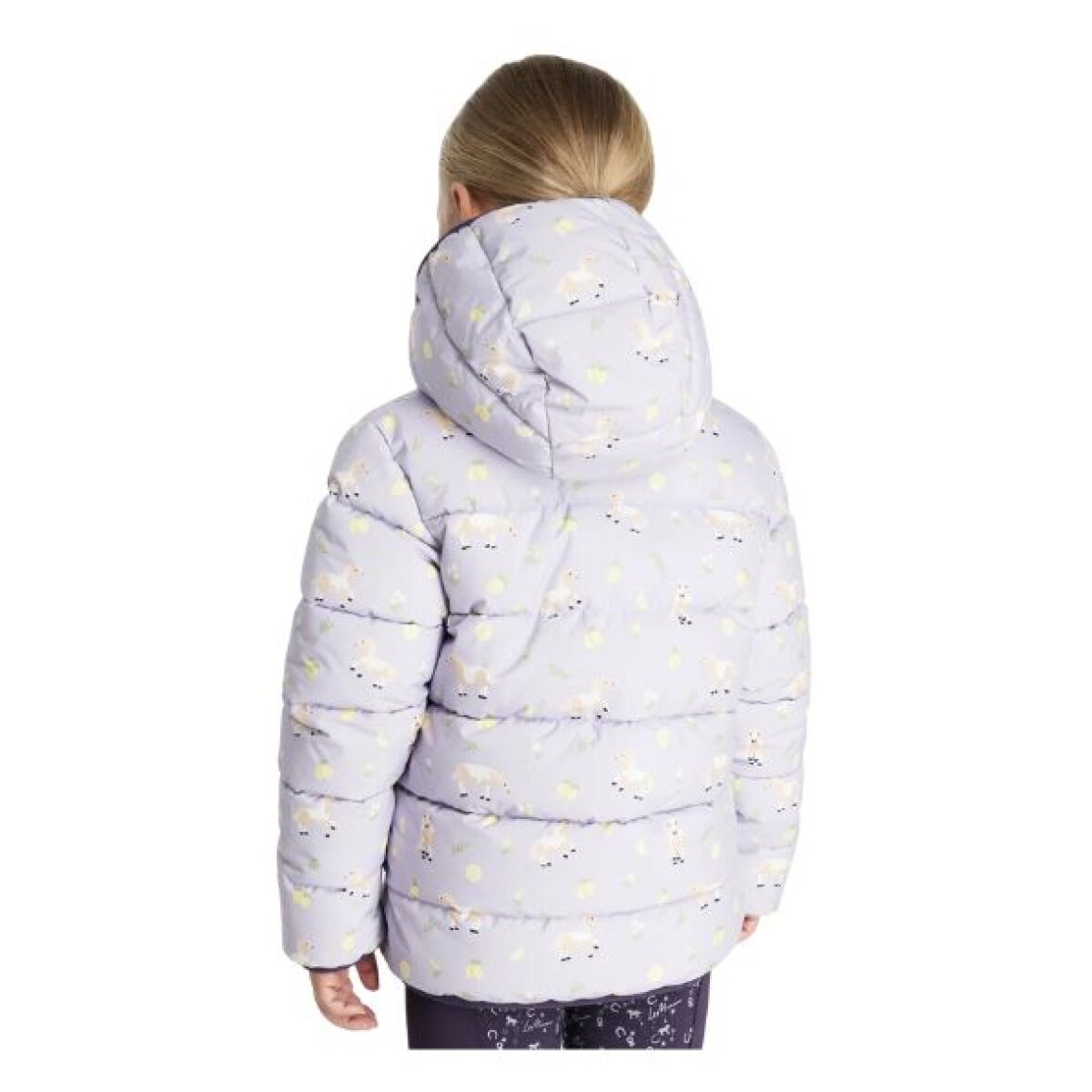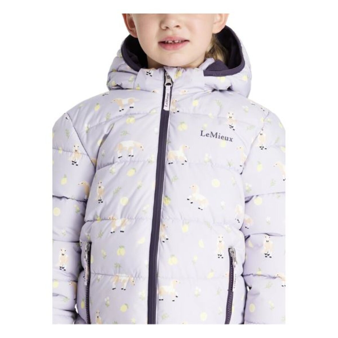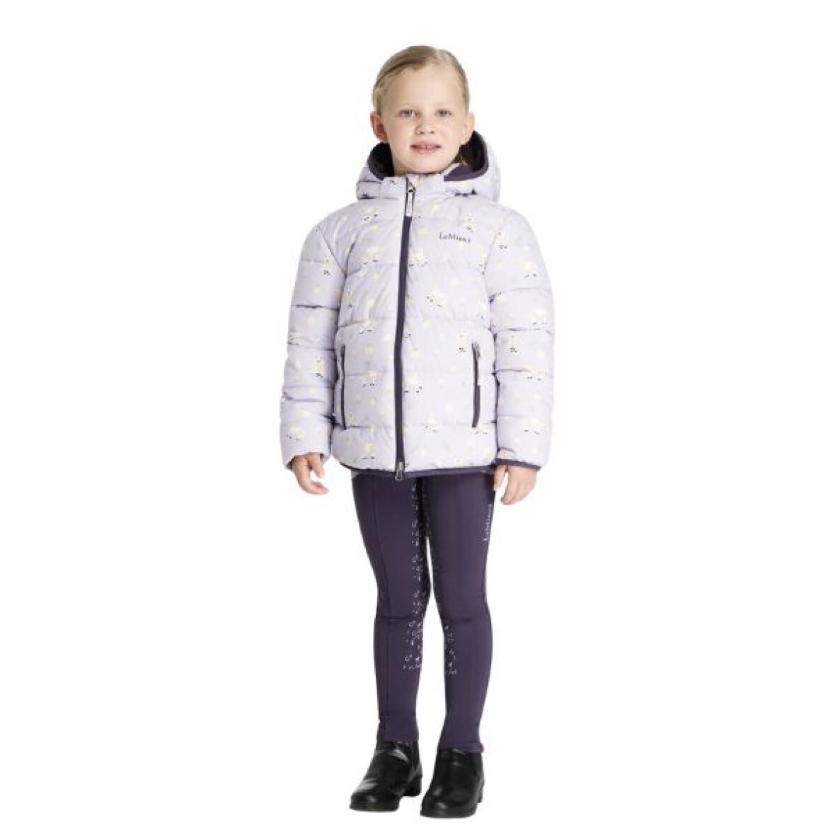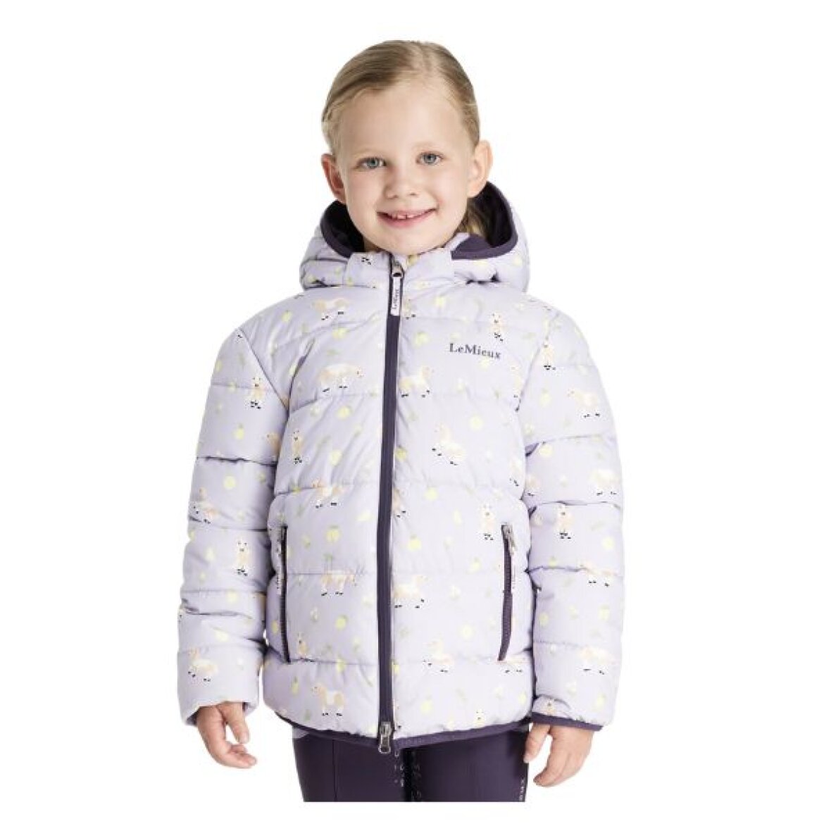 Dynejakke fra LeMieux med det sødeste all-over Lemon pony-print. Jakken er foret og blød, så den holder dig varm og det vandafvisende quilt gør den perfekt til kolde dage i stalden eller på tur. De praktiske fleece-forede lommer holder godbidder eller andre små ting. Den smarte tovejs-lynlås giver masser af bevægelsesfrihed, mens elastiske kanter ved ærmer og bund holder kulden ude samtidig med at stilen er i top.