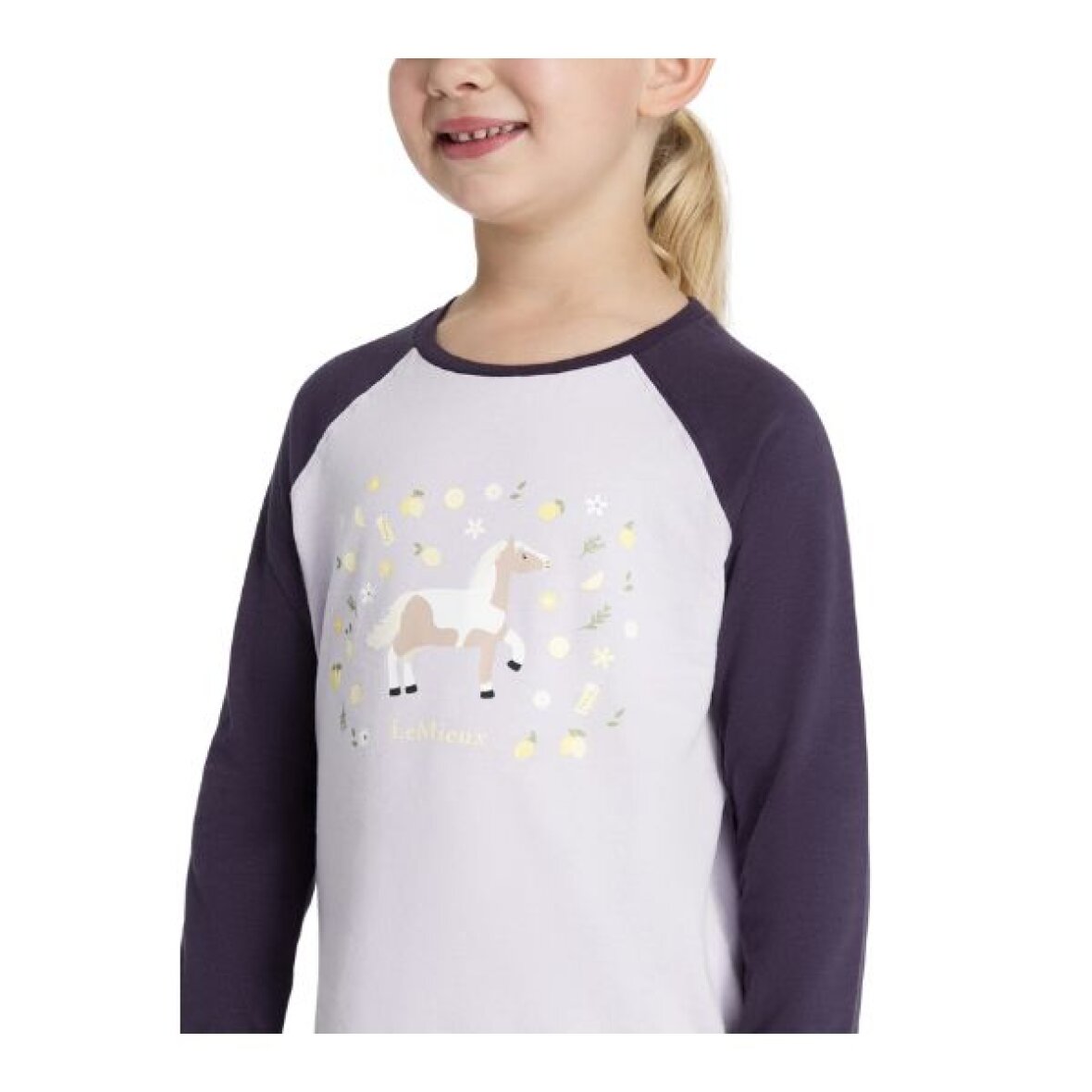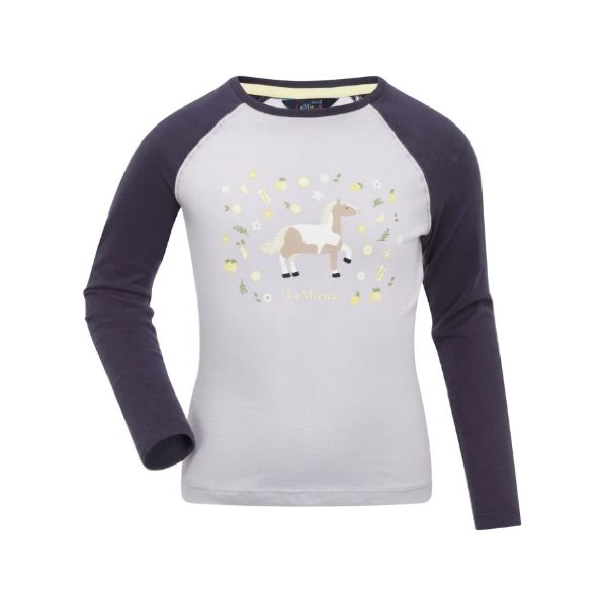Langærmet bluse med det sødeste print fra LeMieux. Det naturlige, superbløde, børstet bomuldsstof giver trøjen en blød og organisk følelse, mens ærmerne i kontrastfarver tilføjer stildetaljer. LeMieux-logo og legende pony-print giver blusen et sødt udtryk, som børn vil elske.