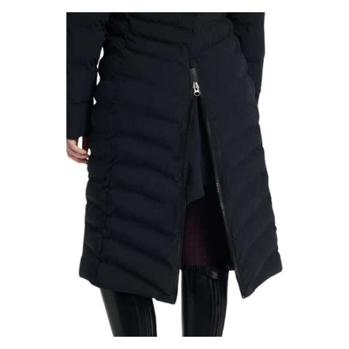 Lang vandtæt dynejakke fra LeMieux i quiltet design. Jakken er fremstillet i slidstærkt, PFC-frit materiale og er vandtæt op til 10.000 mm - perfekt til det danske efterårs- og vintervejr. Samtidig sikrer en åndbarhed på 8.000 mvp, at du forbliver komfortabel når du rider. De tapede sømme langs den tovejs-lynlås forhindrer vand i at trænge ind, mens det genanvendte syntetiske Repreve® fyld giver god varmeisolering. Bagpå har jakken en slids, der dækker sadlen, samt indvendige benstropper for et elegant og strømlinet look, når du rider. Jakkens fine design afsluttes af LeMieux logo på brystet og armen.