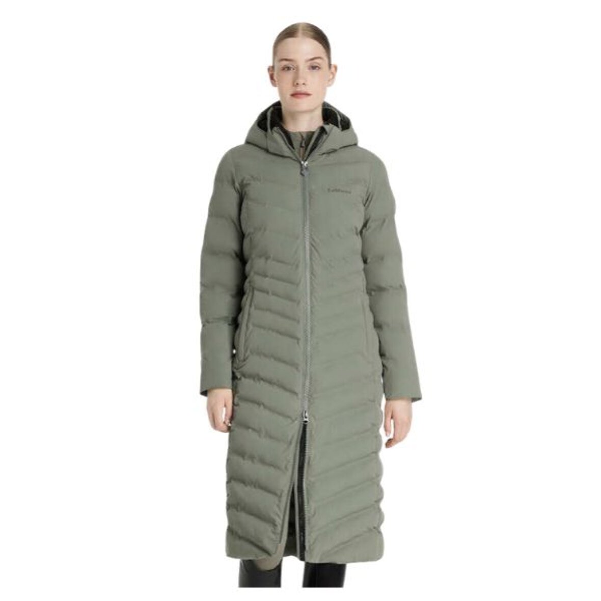 Lang vandtæt dynejakke fra LeMieux i quiltet design. Jakken er fremstillet i slidstærkt, PFC-frit materiale og er vandtæt op til 10.000 mm - perfekt til det danske efterårs- og vintervejr. Samtidig sikrer en åndbarhed på 8.000 mvp, at du forbliver komfortabel når du rider. De tapede sømme langs den tovejs-lynlås forhindrer vand i at trænge ind, mens det genanvendte syntetiske Repreve® fyld giver god varmeisolering. Bagpå har jakken en slids, der dækker sadlen, samt indvendige benstropper for et elegant og strømlinet look, når du rider. Jakkens fine design afsluttes af LeMieux logo på brystet og armen.