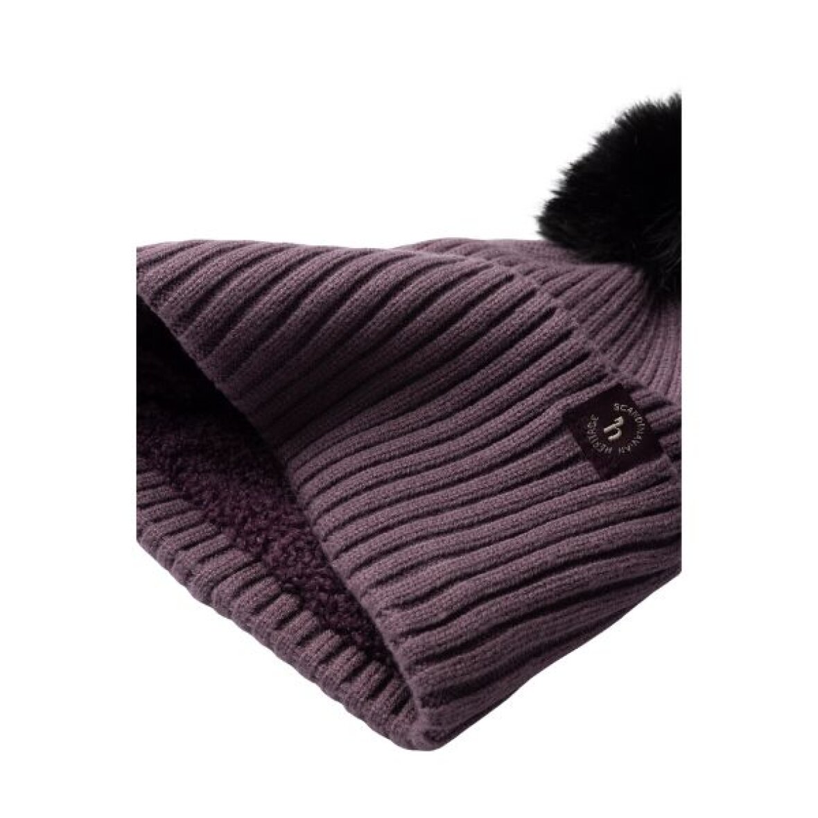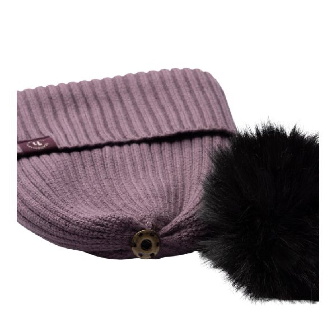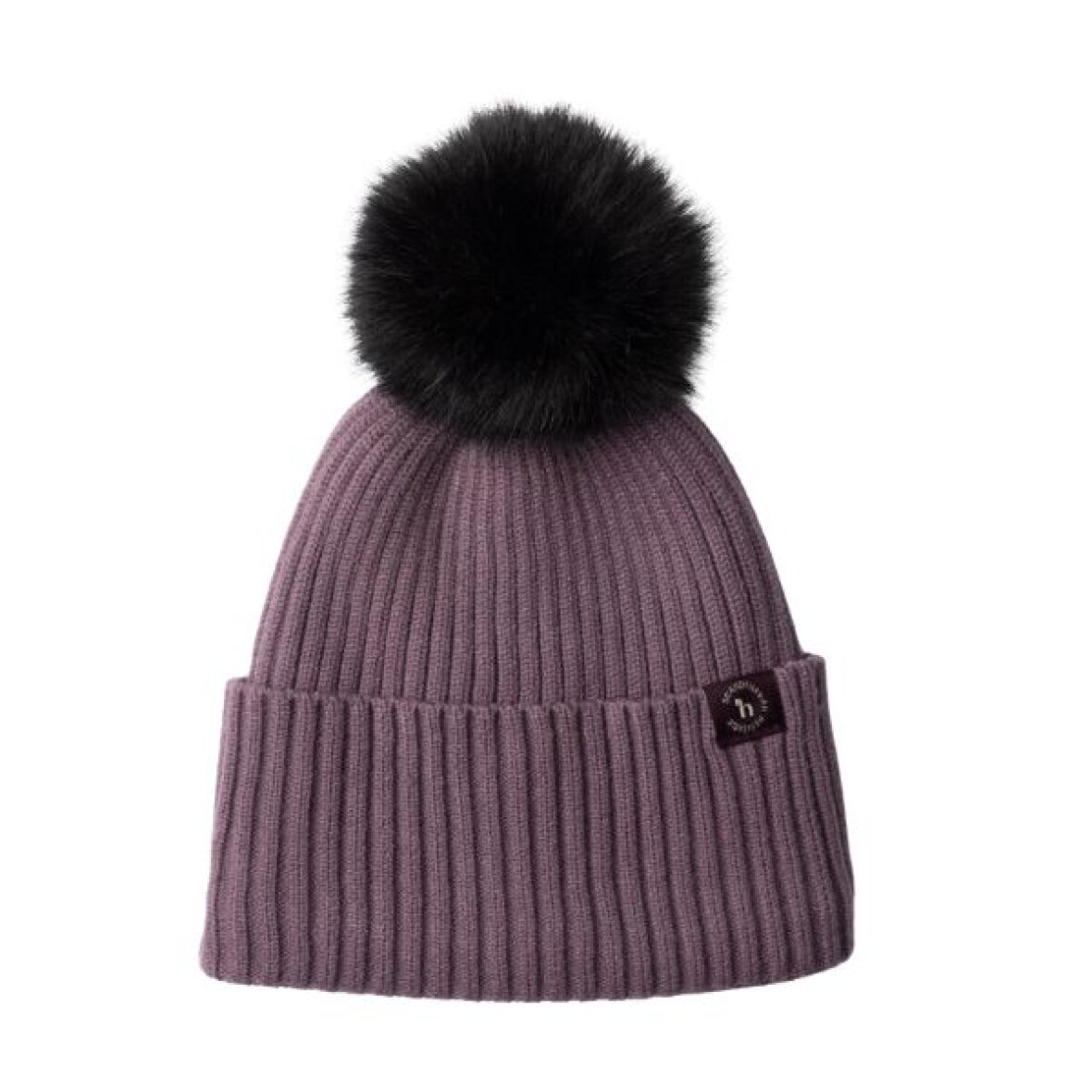 Hue med ombuk og aftagelig kvast fra Horze. Denne hue har blødt fleecefor indvendigt og ribstrik udvendigt og et lille Horze-logo på bukket.