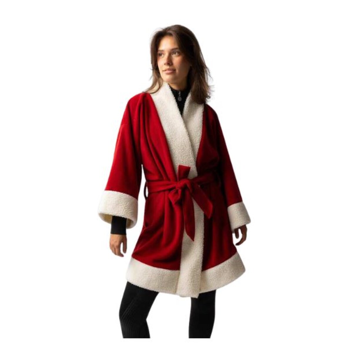 Julekåbe fra Horze med justerbart bælte og pasform i lige snit. Det hvide, bløde faux fur og et lille Horze-logo på ærmet pryder kåben og gør den festlig.
