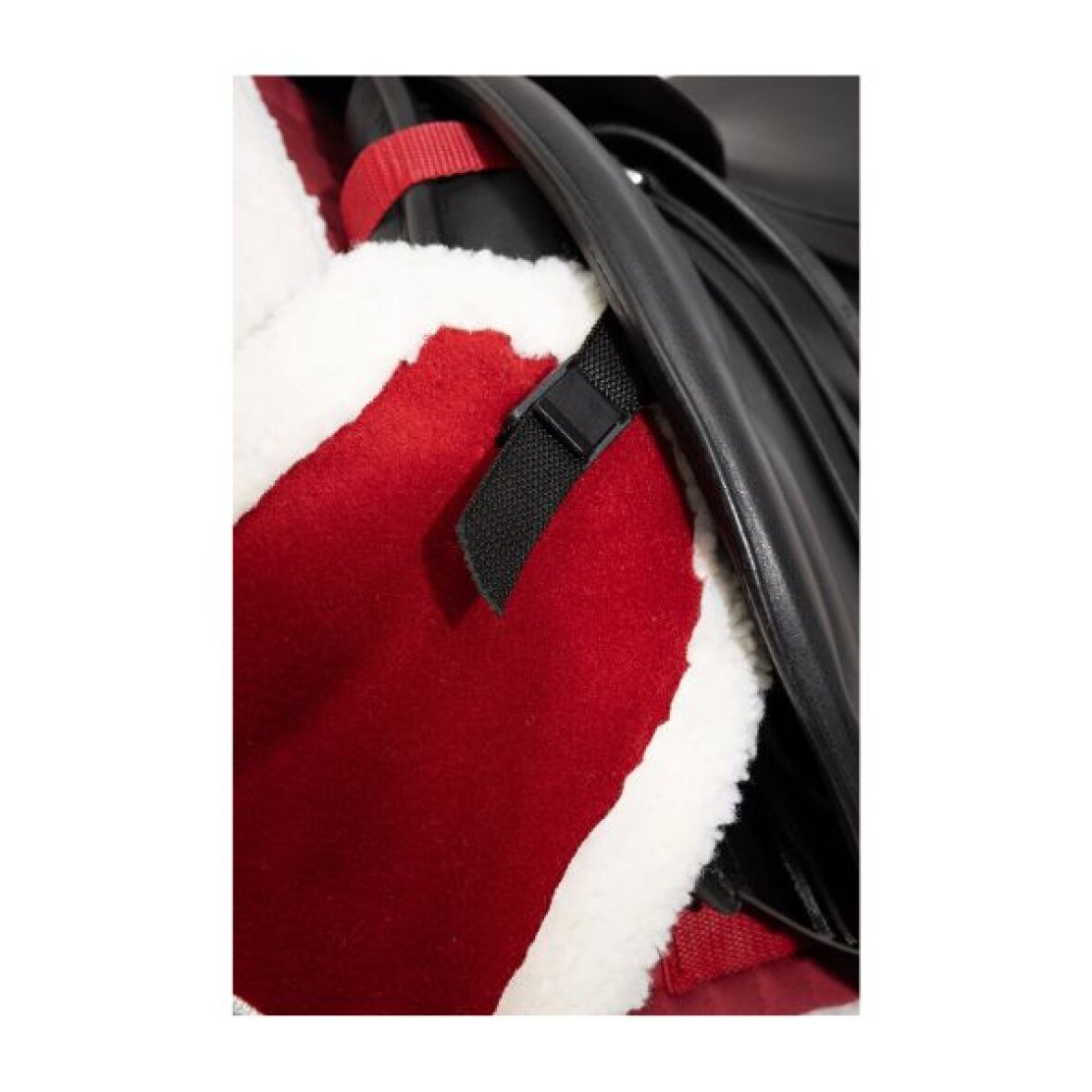 Jule sele til hesten fra Horze. Fremstillet af blødt faux fur, som føles behageligt mod hestens hud og så har selen et lille Horze logo broderet. Fastgøres nemt med burrebånd.
