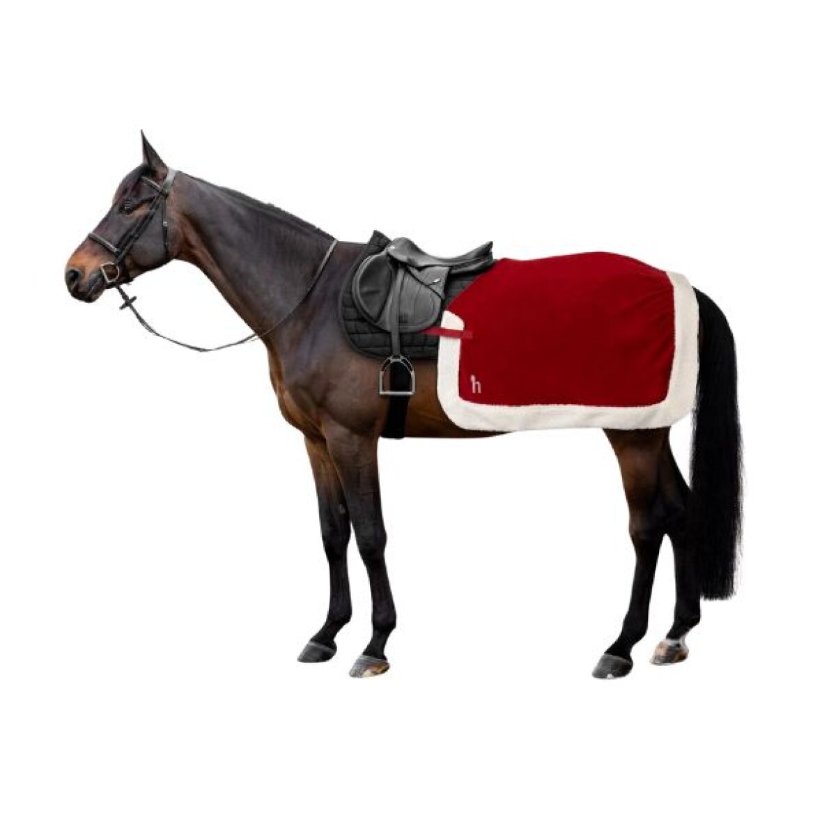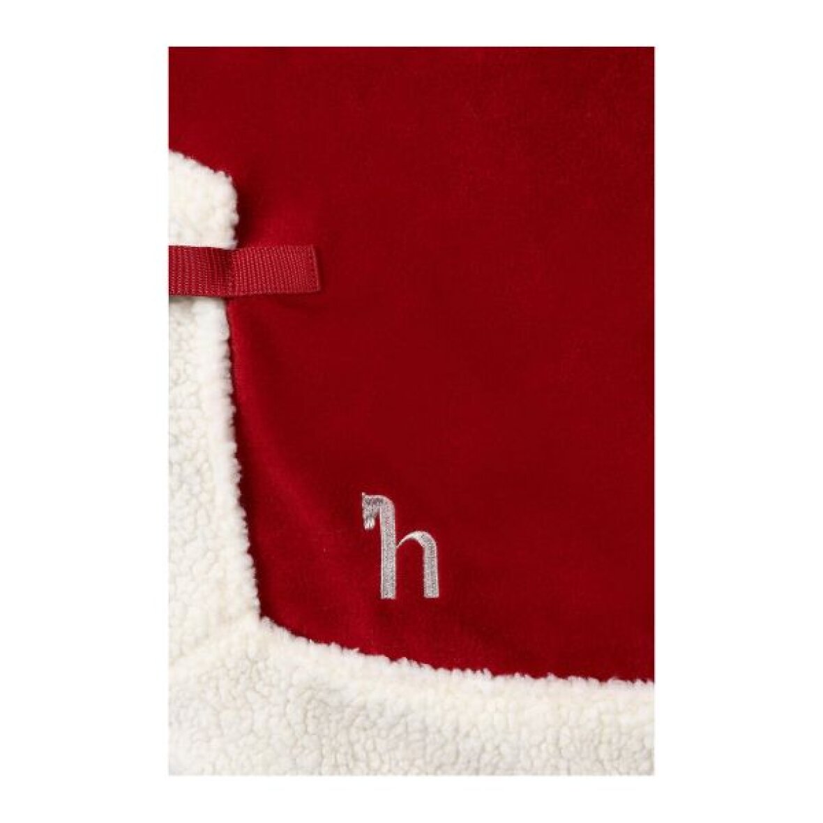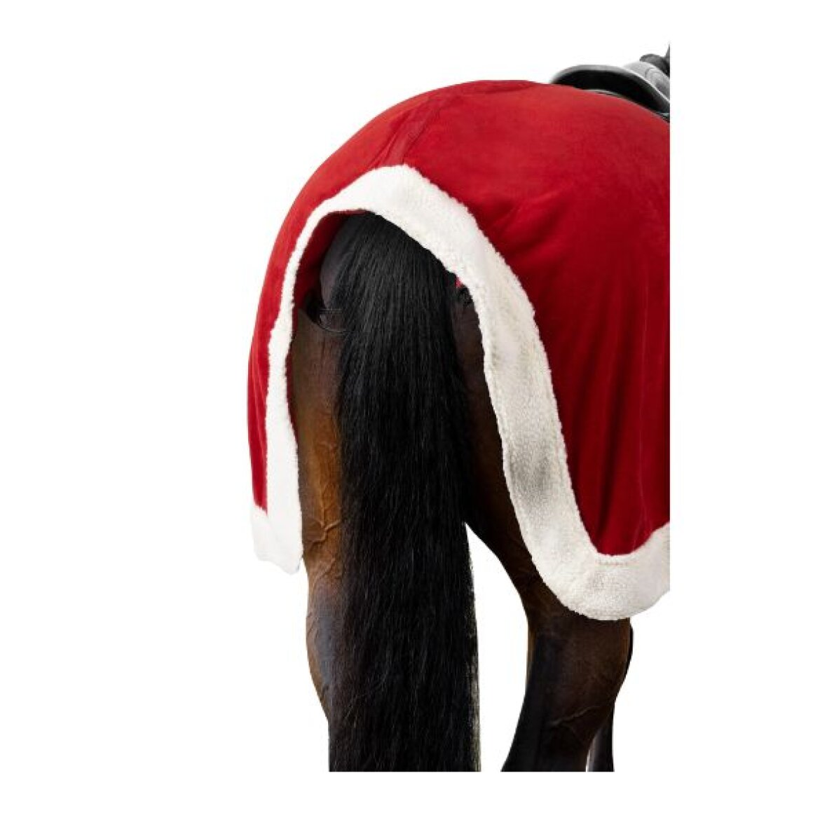 Jule ride lændetæppe fra Horze. Fremstillet i åndbart materiale. Lændetæppet hat hvidt faux fur i kanten, et broderet Horze-logo og så fæstnes det nemt i sadlen med enkle stropper. Dette lændetæppe vil tilføje ekstra julestemning og sjov til rideturene i december.
