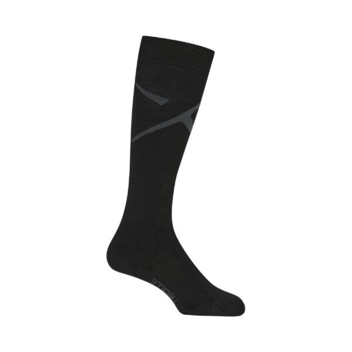 Knæhøj ridestrømper i uld-mix fra Trolle Projects. Den knæhøje-længde sikrer den optimal dækning og støtte, og stjerne-logo på læggen giver strømpen et flot design. Yderligere detalje finder du på fronten, hvor et tone‑på‑tone stjerne-logo tilføjer et elegant touch. Strømpen er udført i avanceret Q‑Skin‑garn, som aktivt arbejder med antibakterielle egenskaber, forbedret åndbarhed og fugtkontrol for at holde dine fødder friske og komfortable hele dagen.