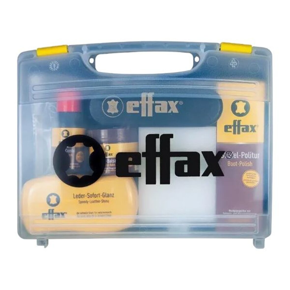 Læderpleje sæt i en transportabel kuffert fra Effax. Sættet indeholder højkvalitets produkter fra Effax til at pleje læder samt rense og beskytte det mod snavs og vand.