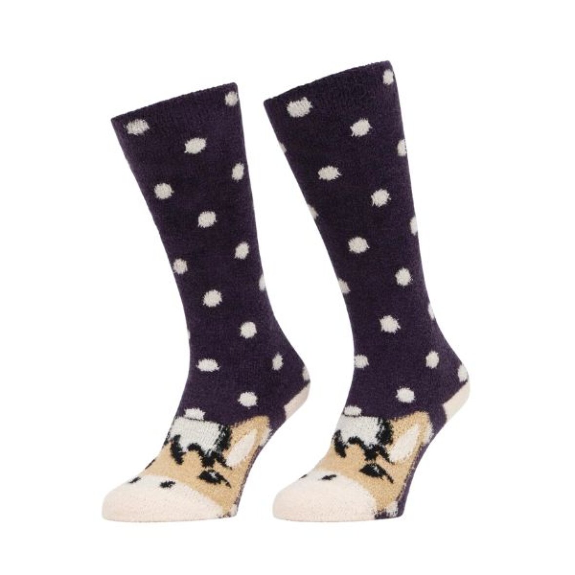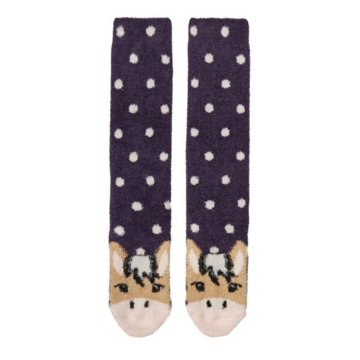 Superbløde, fluffy sokker fra LeMieux. Sokkerne er designet med den sødeste pony-figur ved fødderne. Den høje længde og elasticitet gør dem komfortable og ideel til både at holde varmen derhjemme eller i stalden.