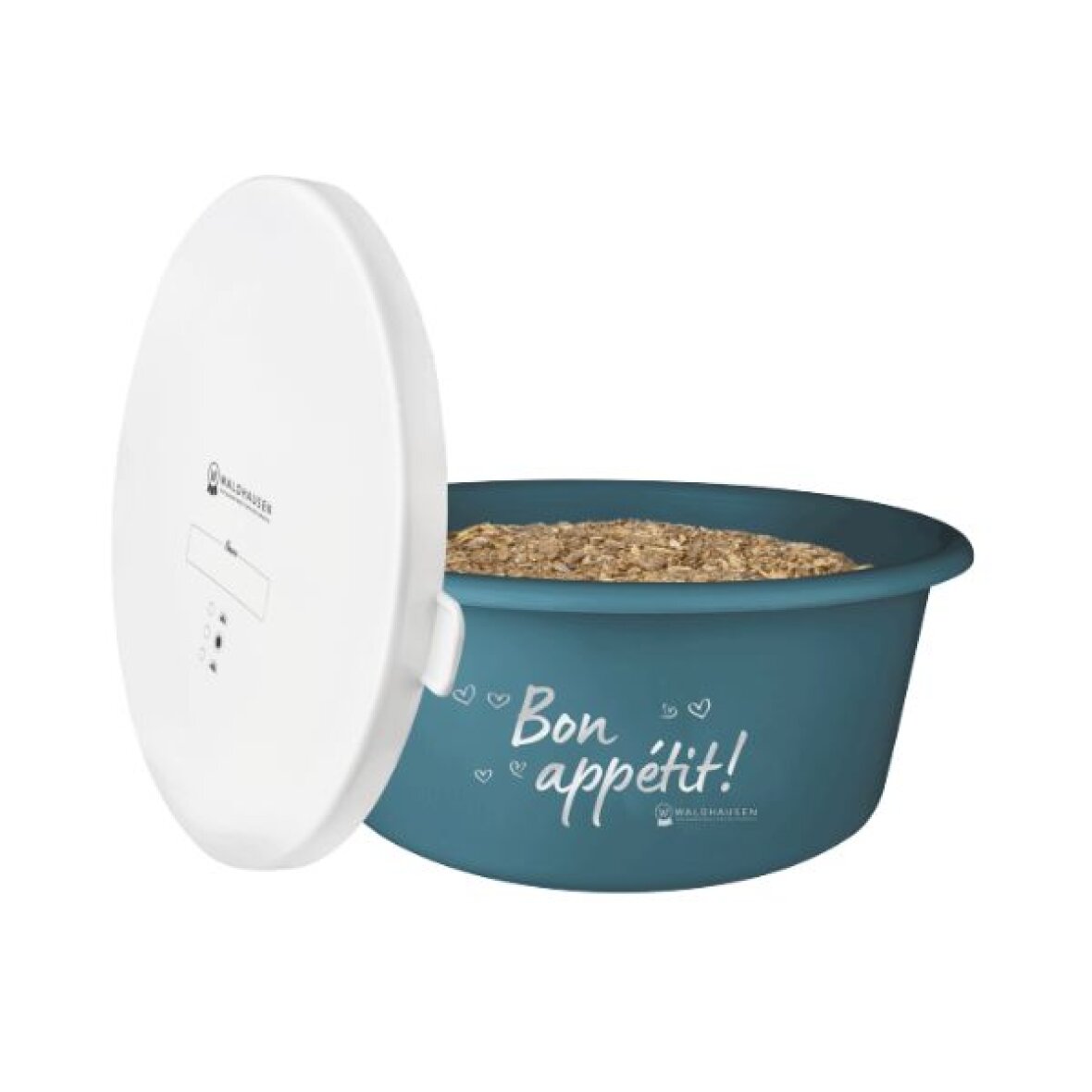 Plast spand med låg til brug af foder, vand, godbidder osv.. Kan indeholde op til 5 l.