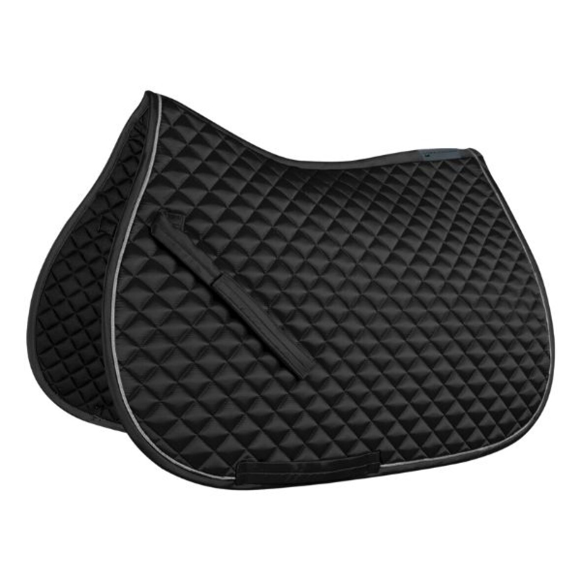 Spring underlag fra Waldhausen i skinnende materiale og med glitrende kantbånd. Underlaget er åndbart, svedabsorberende og har 15 mm specialskum i fyldet, hvilket har en trykudlignende og stødabsorberende effekt. Underlaget fastgøres med to velcrostropper.