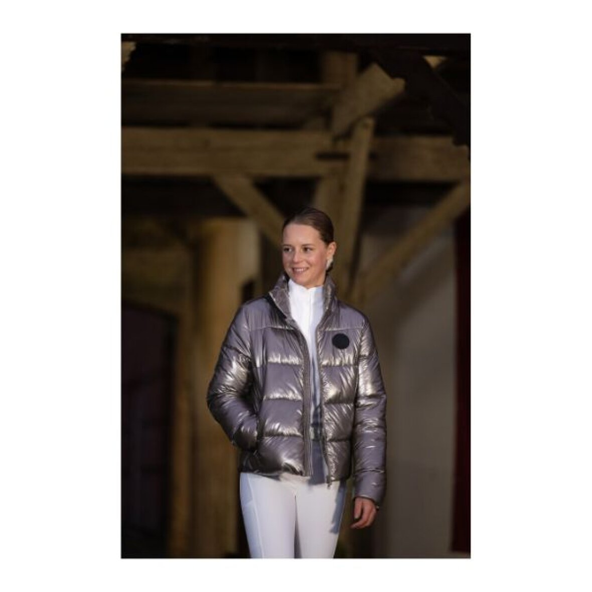 Kort metallisk ridejakke fra Kingsland, der kombinerer et moderne look med praktiske detaljer. Jakken er behandlet med en DWR C0 PU-coating, som giver en vandtæthed på 3.000 mm - perfekt til let regn og fugtige forhold. Det betyder, at du holder dig tør, samtidig med at jakken yder fremragende isolering, så du bevarer varmen på de kolde dage. Med sine vindafvisende egenskaber beskytter jakken også mod blæst, hvilket gør den ideel til både ridning og staldarbejde i omskifteligt vejr. Den indvendige 2-vejs kvalitetslynlås sikrer en god pasform og et stilrent look. Denne ridejakke er perfekt til rytteren der ønsker funktionalitet uden at gå på kompromis med stil.