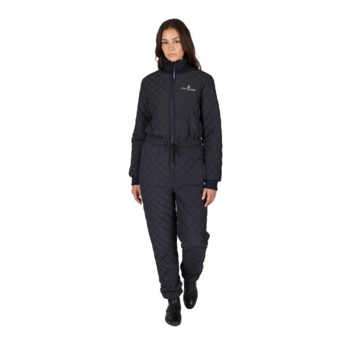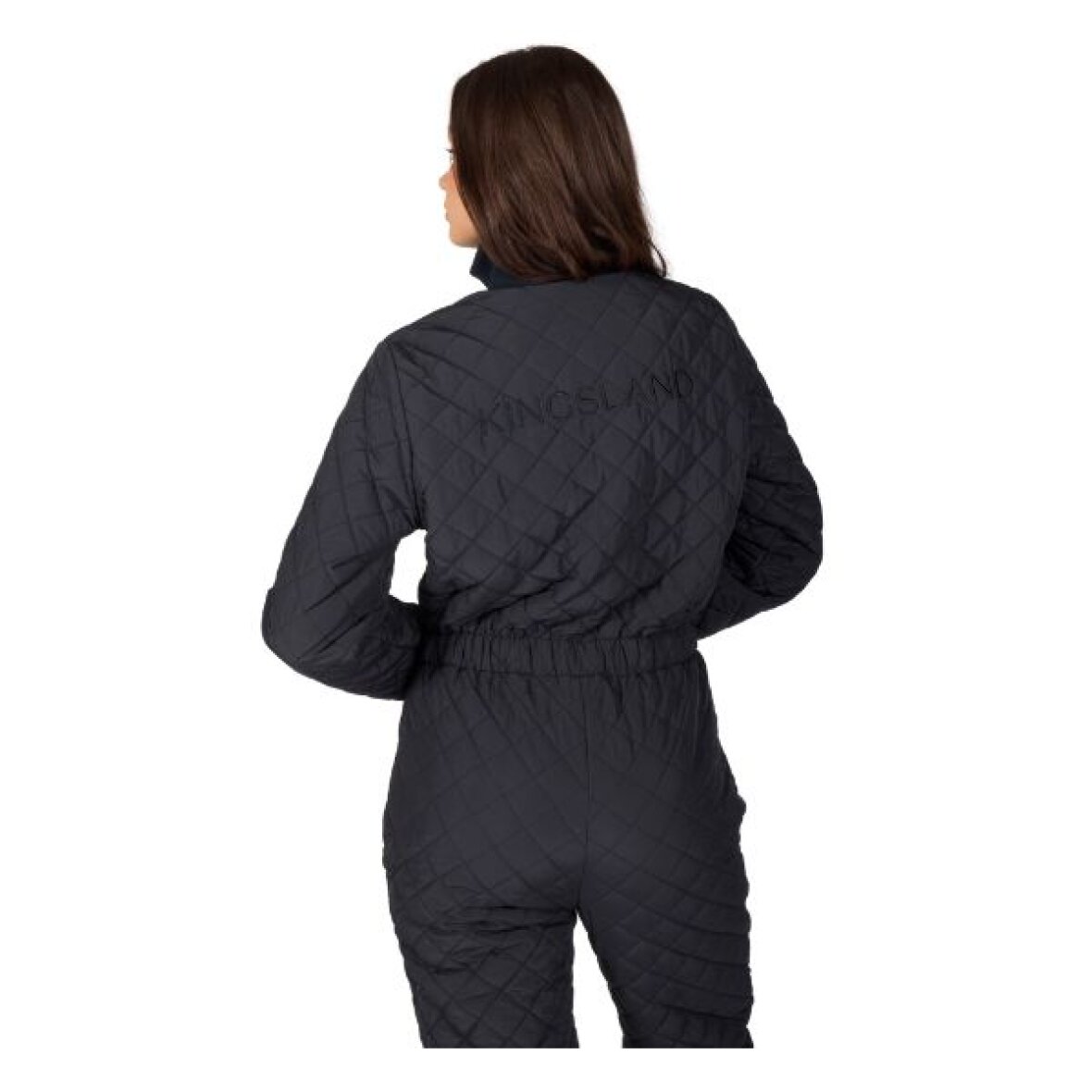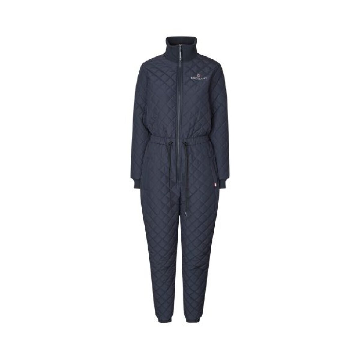 Heldragt fra Kingsland i navy med logo på brystet og flot quiltning. Heldragten er åndbar, varm og har soft touch. Det feminine snit giver en flot pasform, mens taljesnoren gør det nemt at tilpasse dragten. Super praktisk heldragt, som kan bæres alene på de milde dage i stalden, men også som lag til de helt kolde dage.