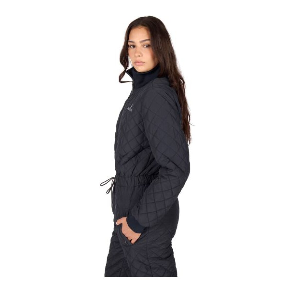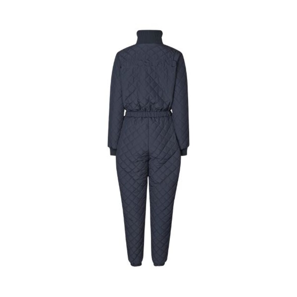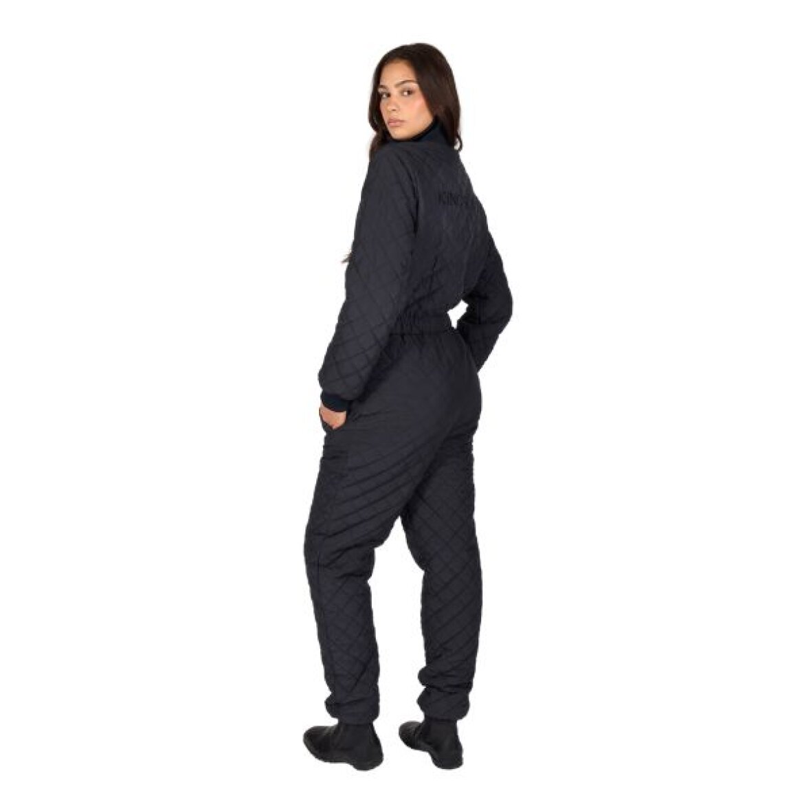 Heldragt fra Kingsland i navy med logo på brystet og flot quiltning. Heldragten er åndbar, varm og har soft touch. Det feminine snit giver en flot pasform, mens taljesnoren gør det nemt at tilpasse dragten. Super praktisk heldragt, som kan bæres alene på de milde dage i stalden, men også som lag til de helt kolde dage.
