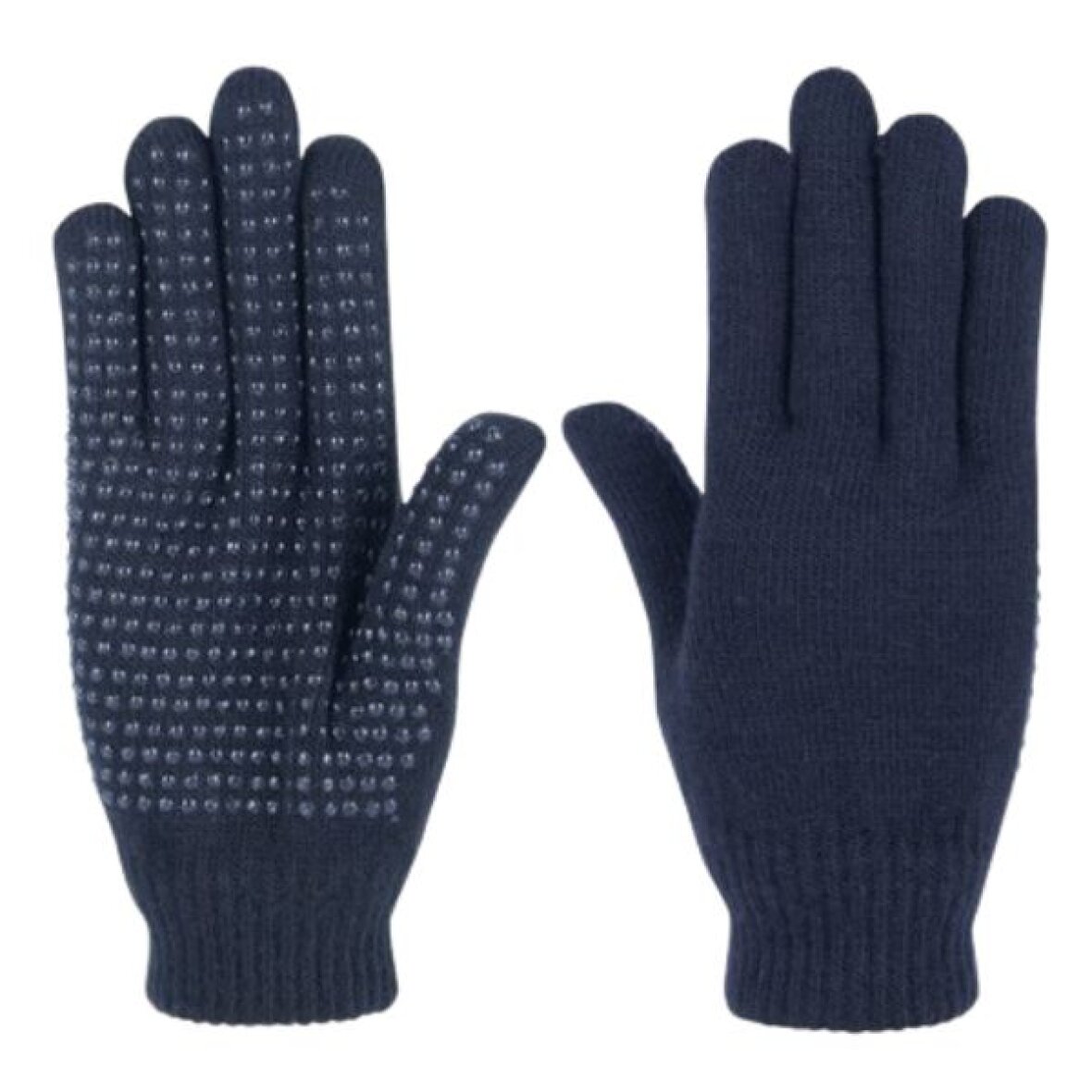 Strikkede ridehandsker fra Harrys Horse. Disse ridehandsker er med anti-slip knopper indvendig for at give et godt greb om tøjlerne. Bred elastik ribbet kant ved håndleddet.