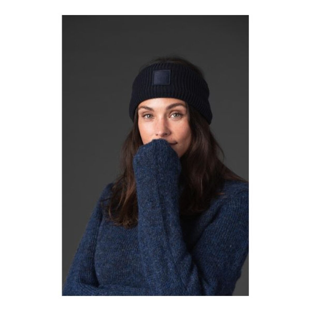 Ribstrikket pandebånd fra Catago med fleece for og tone-i-tone logo på fronten.