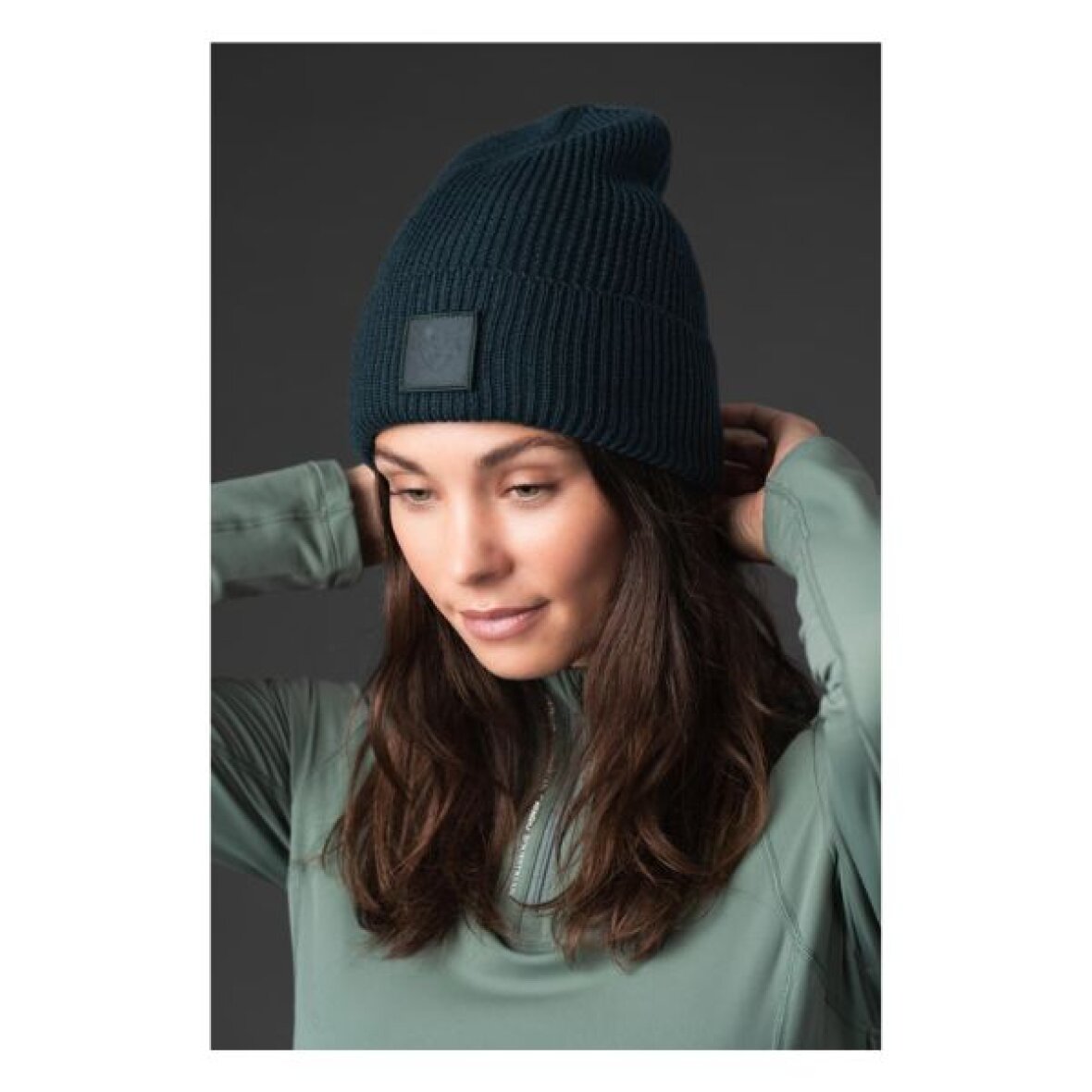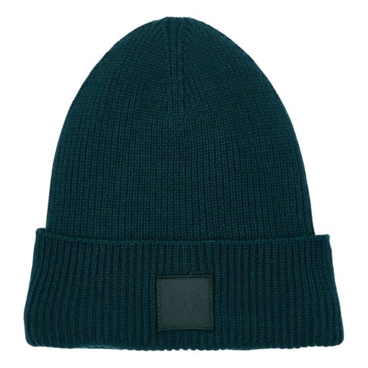 Ribstrikket hue fra Catago med blødt fleece for. Tone-i-tone logo badge på fronten.