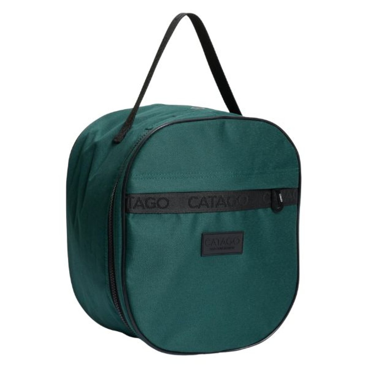 Enkel og slidstærk hjelmtaske fra Catago. Denne hjelmtaske er en god beskyttelse til dig ridehjelm den er nemt at tag med da den er med nylon håndtag. Hjelmtasken er med Catago logo kantbånd og med gummi patch på fronten med logo. Lille frontlommer med lynlås til nøgler eller ligende.