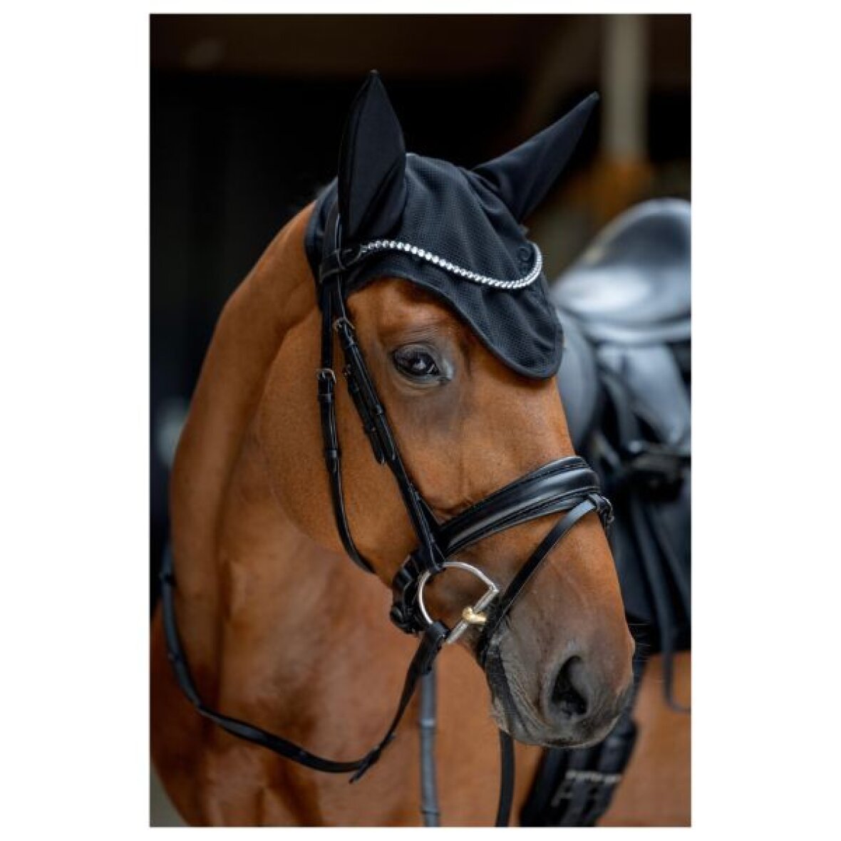 FIR-tech hut med lyddæmpende øre fra Catago. Indermaterialet i FIR-tech indeholder indvævede keramiske partikler, der sørger for at løsne spændinger i nakken, samt øge blodcirkulationen. De lyddæmpende øre har en beroligende effekt på hesten. Tone-i-tone broderet logo på den ene side i fronten.