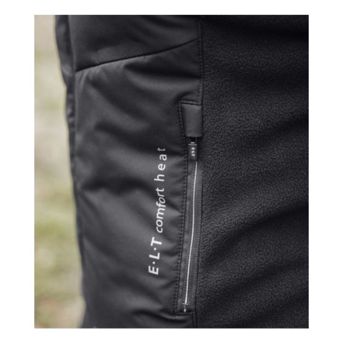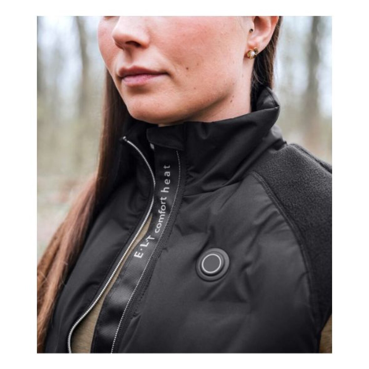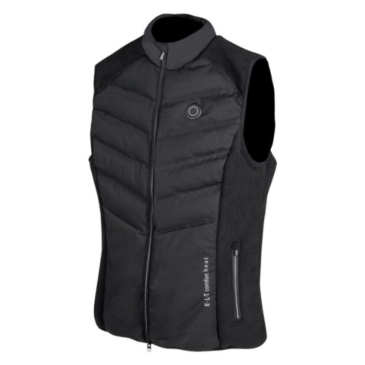 Vest fra ELT med varmeteknologi. Vesten har et let figursyet design med quiltet front og ryg i vindtæt og vandafvisende materiale, mens sider og skuldre er i blød fleece for ekstra fleksibilitet. En praktisk 2-vejs lynlås foran, to sidelommer med lynlås og elastiske afslutninger ved ærmegab og søm fuldender designet. Seks strategisk placerede varmezoner - tre i ryggen, to foran og én ved nakken - sørger for effektiv varmefordeling. Temperaturen justeres nemt via en knap med tre niveauer: 45 °C (blå), 50 °C (hvid) og 55 °C (rød). Varmefunktionen drives af en standard 5V/2A USB powerbank (medfølger ikke), som tilsluttes via det integrerede USB-kabel i vestens indvendige lomme.