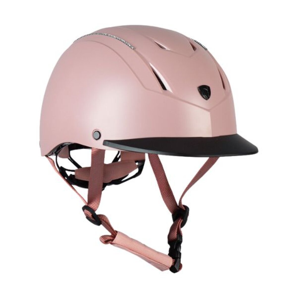 Ridehjelm med glitter detaljer fra Horka. Denne ridehjelm er justerbar i nakken og har god ventilation. Ridehjelmen har aftageligt og vaskbart for, så man nemt kan vaske foret.